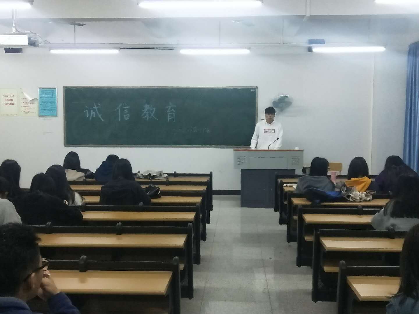(通讯员 马恬)3月25日晚上,17会计1班在12栋916开展了“诚信教育”主题班会,出席本次班会的有辅导员钟月月老师以及17会计1班的全体同学。杨家辉主持。