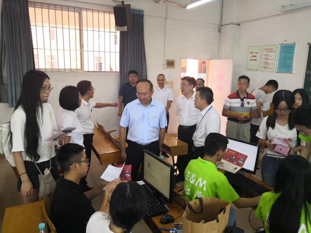 上午9时,党委书记黄圣诚及相关校领导一行来到我院7栋206迎新教室进行指导和慰问,了解我院的新生报道情况,对我院的迎新工作进行指导。黄书记指出一定要做好每一名新生的报到注册工作。