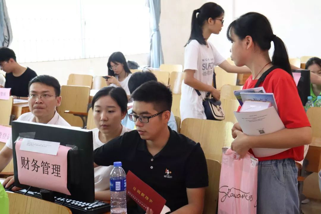 尽管今年我院的录取人数减少,但是我们的工作热情不减,服务更周到、更贴心。在新生学子们叩响大学殿堂的大门时,一个又一个穿着荧光绿衣的“指路人” 带领他们到相关地点办理入学手续并告知入学相关事宜。炎炎夏日抵挡不住师兄师姐们对新生的热情帮助;尽管他们已汗流浃背,但依然坚守岗位,对新生进行引导、帮助搬运行李。