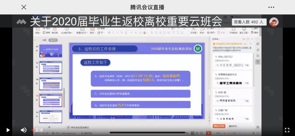 此次云班会的召开强调了疫情防控教育管理重要性,让毕业生清楚了毕业离校的各项程序及相关注意事项,提高了毕业生返校的安全意识,确保了各项工作扎实推进。