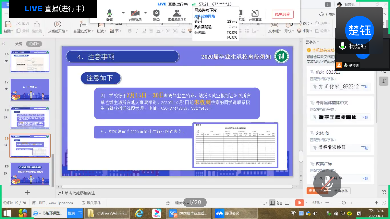 (通讯员:谭智和、钟月月)为全面贯彻落实学校关于2020届毕业生返校离校工作方案,切实做好毕业生返校离校相关具体工作,我院于6月7日晚召开2020届毕业生返校离校主题云班会。会议由辅导员谭智和、杨楚钰、钟月月分别主持,全体毕业班同学参加。