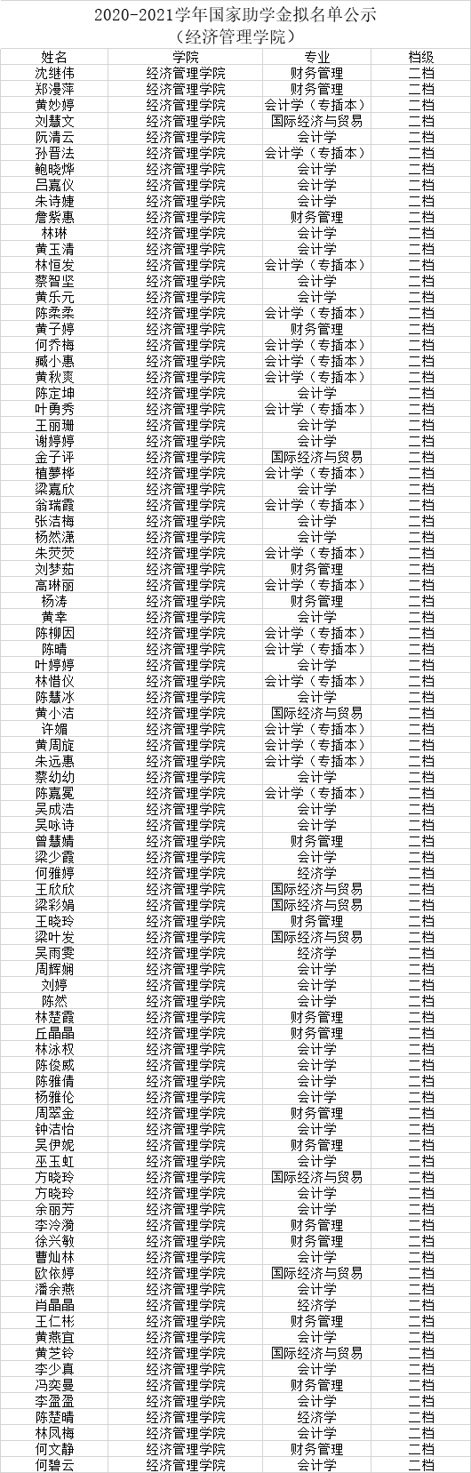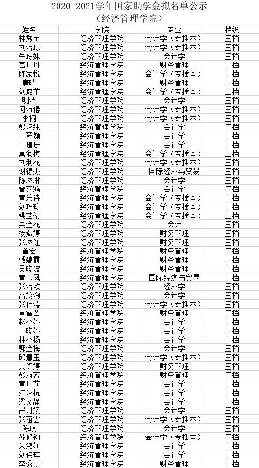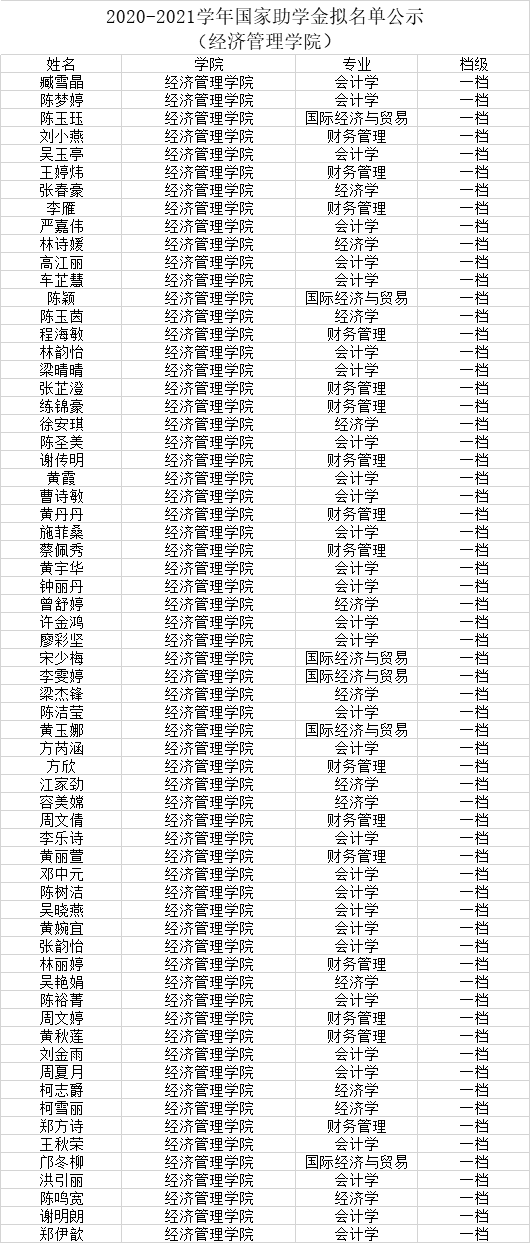 根据国家助学金评选细则,我院2020-2021学年国家助学金拟名单公示。