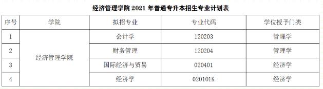 为充分利用优质的教育资源,满足更多高职院校学生深造的需求,我校2021年将继续面向全省开展普通专升本招生。2021年我院普通专升本仍是4个招生专业,分别为会计学、财务管理、国际经济与贸易、经济学(金融)。