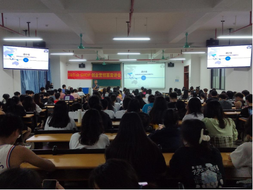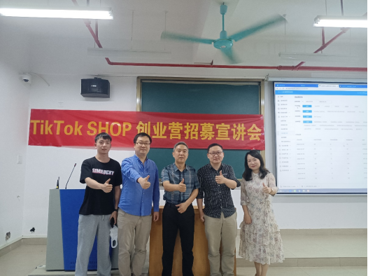 (孙春露)5月9日晚,我院于13栋教学楼401阶梯教室召开TIk Tok SHOP创业营招募宣讲会,副院长倪江崴主持,广东向榕科技有限公司暨店小生东南亚分销平台创始人廖耿彬及其合伙人邓铭杨应邀担任主讲嘉宾。国际经济与贸易专业、国际经济与贸易专业、电子商务专业、商务英语专业近200位同学参加。