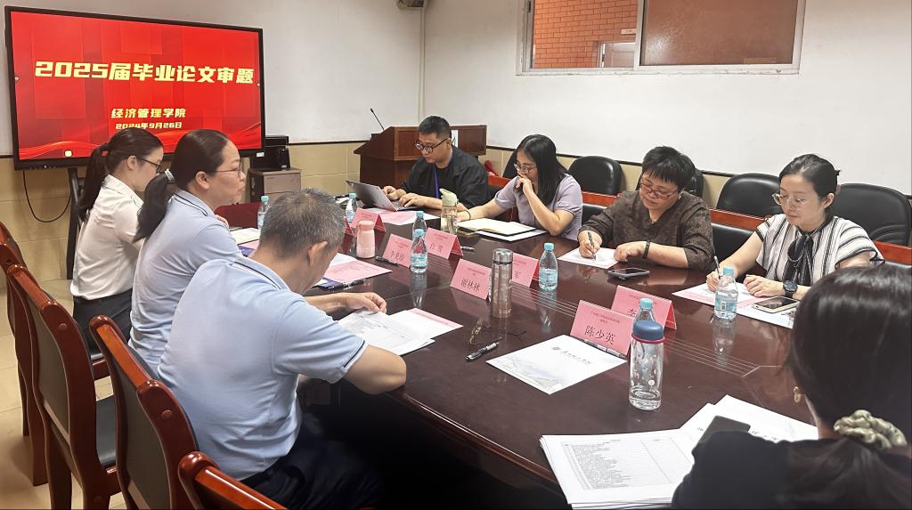(通讯员:黄爱青)为贯彻落实《William威廉官网本科毕业论文(设计)工作管理规定(修订)》文件要求,进一步规范和加强学院毕业论文(设计)管理工作,保证2025届本科毕业论文(设计)选题质量,9月26日下午,William威廉官网开展了2025届毕业论文选题论证会。会议由常务副院长李美珍教授主持,特别聘请广东技术师范大学财经学院会计系主任蔡军教授和仲恺农业工程学院经贸学院李争副教授两位校外专家参加评审,院长谢林林教授和各专业系主任参会。