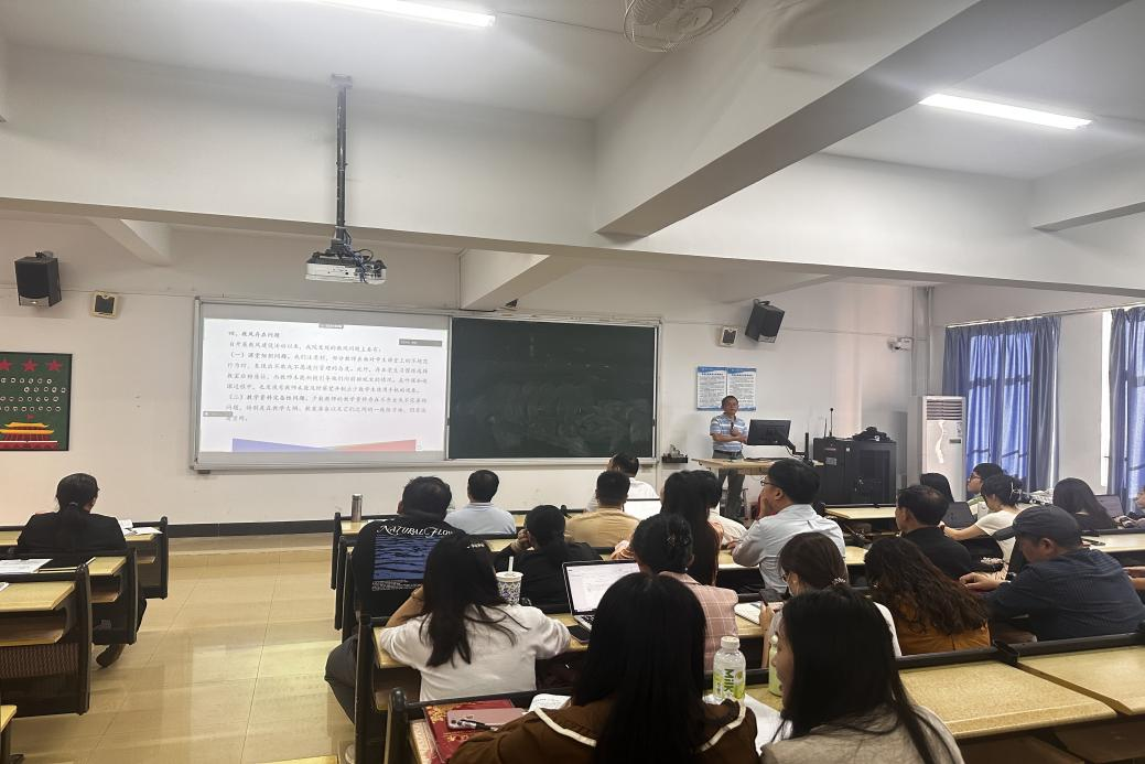 紧接着,彭书记与全体参会人员一同深入解读了广东省教育厅下发的关于《新时代高校教师职业行为十项准则》。这些准则涵盖了坚守政治方向、自觉爱国守法、传播优秀文化、潜心教书育人、关心爱护学生、坚持言行雅正、遵守学术规范、秉持公平诚信、坚守廉洁自律以及积极奉献社会十个方面。彭书记再次强调了师德师风建设的重要性,鼓励全体教职工要不断学习、不断进步,努力提升自身的职业素养和综合能力。
