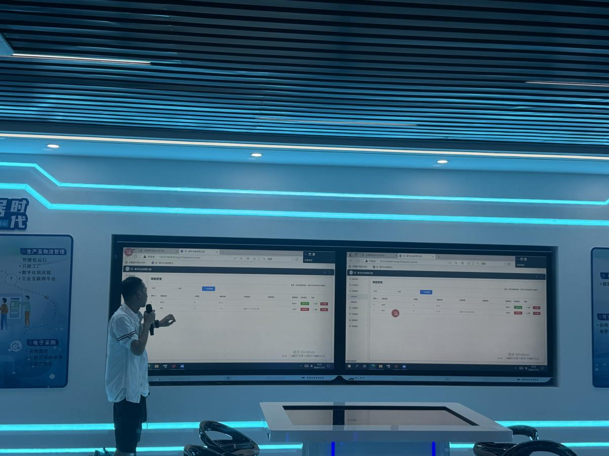 在实际操作演示环节,朱总监详细展示了两个平台的具体功能与使用步骤。他解释说,数字企业多点触控实验平台融合了ERP管理思维与数字化思维,利用多点触控技术、虚拟仿真技术、大数据可视化技术等多种技术,对企业决策层、管理层、业务层三个层次以及战略管理、财务管理、生产管理等多个活动主题进行仿真模拟。而大数据分析与可视化实验平台则侧重于可视化分析软件工具的学习与数据可视化分析。