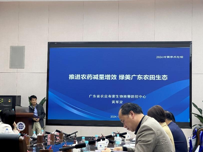 省农业有害生物预警防控中心科长——黄军定从了解农药为起点,扩大讲述农药减量增效措施和成效,其为“一完善,三推进”。面对新入侵害虫草地贪夜蛾的压力,分析了产生的原因并给出了准确的解决方案。
