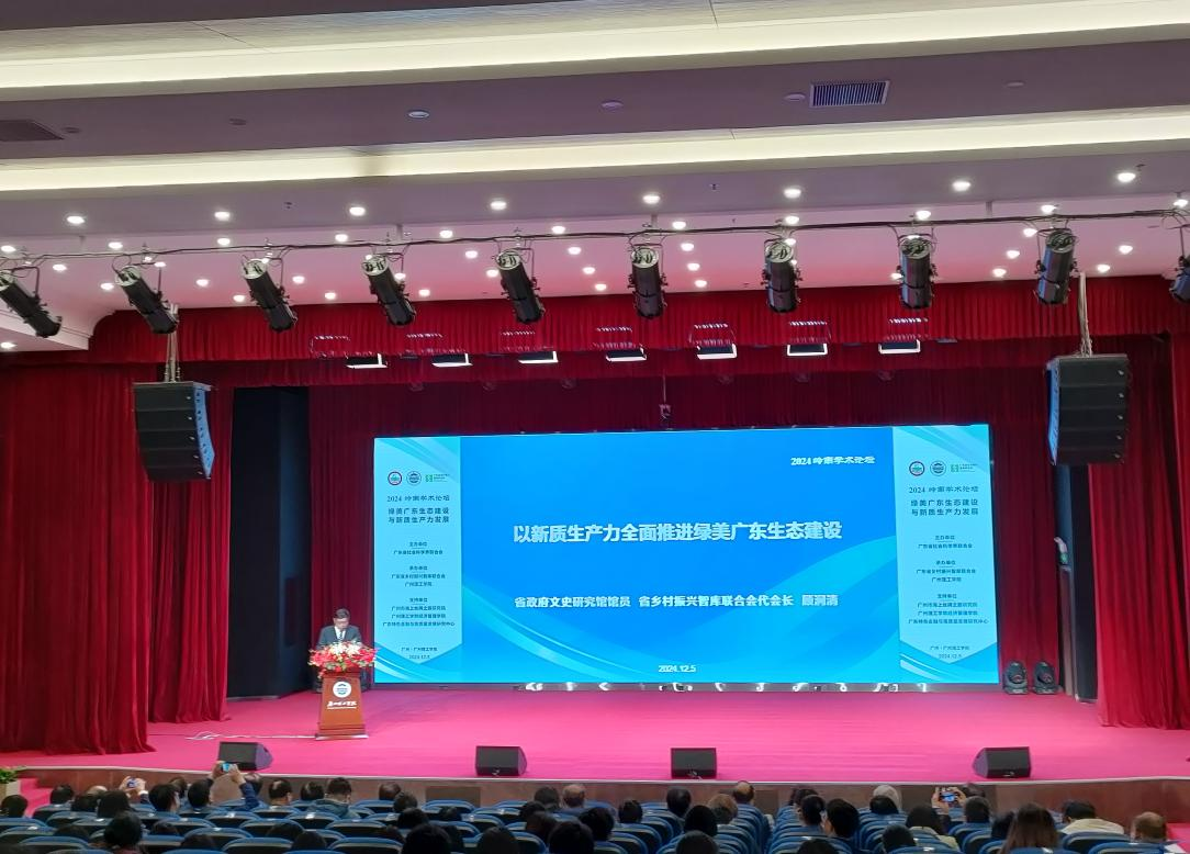 省政府文史研究馆馆员、省乡村振兴智库联合会代会长顾涧清以《以新质生产力全面推进绿美广东生态建设》为题进行主旨演讲。他表示,以新质生产力全面推进绿水青山转化为金山银山是一篇大文章。他认为,在绿美广东生态建设中,新质生产力的发展具有至关重要的意义,并从社会科学和科学技术结合的角度辩证地论证了新质生产力必将为绿美广东生态建设注入强动力。