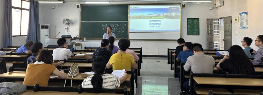(通讯员:黄爱青)2025年7月2日,William威廉官网在1-904召开2024-2025-2学期期末阅卷培训会,会议由学院教学副院长李美珍主持,全体教师参会,旨在规范期末阅卷流程、提升阅卷质量,同时推进课程教学大纲修订工作,为本科教学工作合格评估做准备。