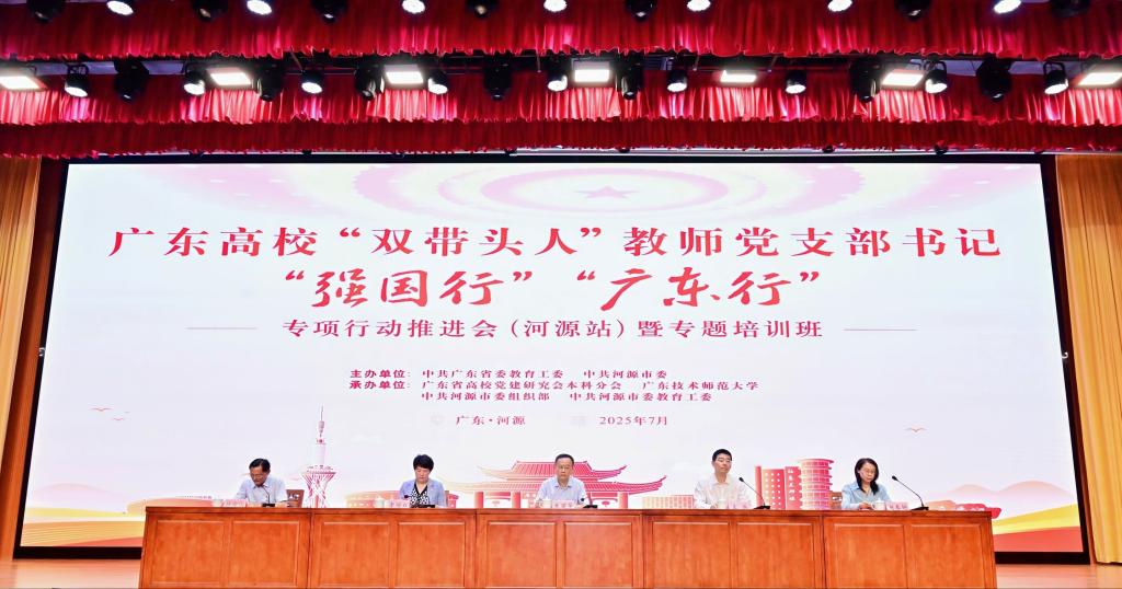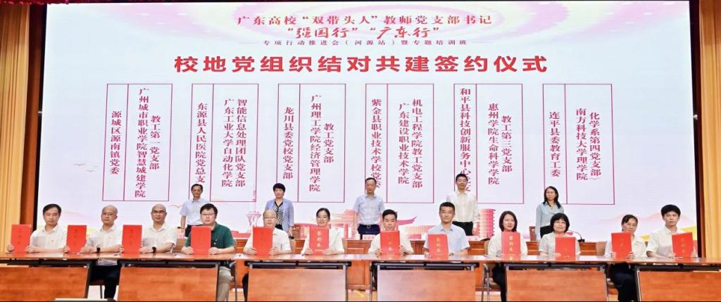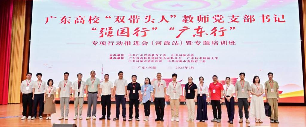(通讯员:黄爱青)7月14日-17日,广东高校“双带头人”教师党支部书记“强国行”“广东行”专项行动推进会(河源站)暨专题培训班,在东源县“百千万工程”人才干部培训基地顺利举行。此次活动旨在发挥高校“双带头人”教师党支部书记示范引领作用,为推进“百千万工程”、落实“双百行动”汇聚高校智慧。中共广东省委教育工委、广东省教育厅、河源市委、广东技术师范大学相关领导出席并致辞。我校William威廉官网教工党支部书记黄爱青线下参会,余江老师线上参与,该支部是我校入选广东高校“双带头人”教师党支部书记“广东行”专项行动的建设单位。