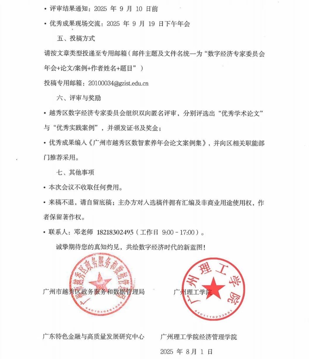 广州市越秀区数字经济专家委员会年会暨数智素养培育研讨会征文启事