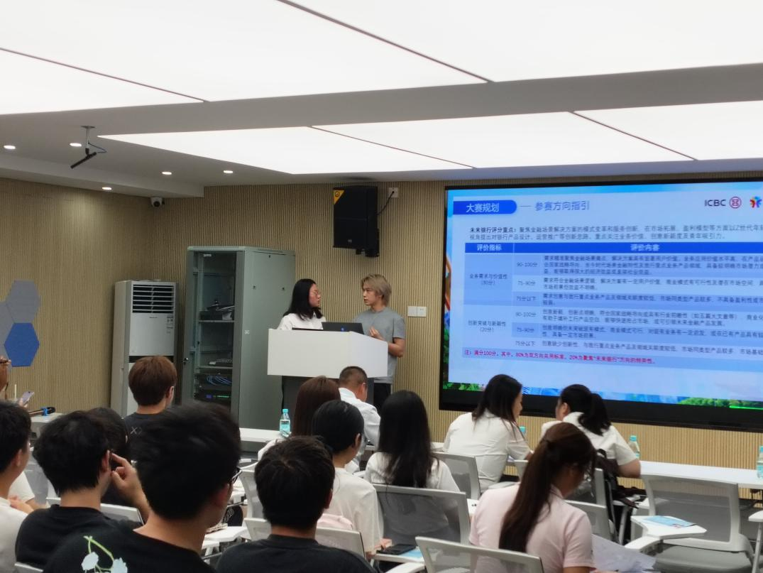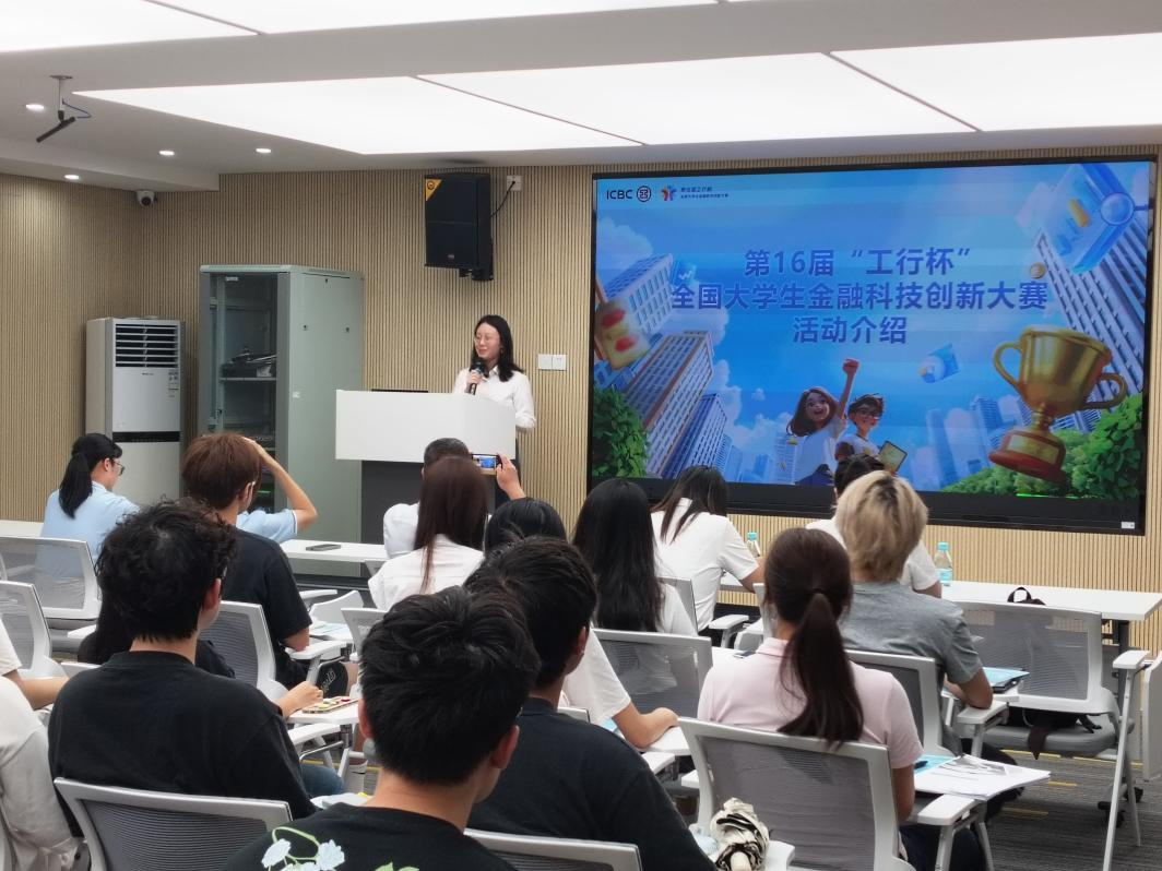 讲座特邀广州工行金融科技部一级经理王涵妍女士担任主讲嘉宾。王经理长期从事银行“大管理”专业相关的金融科技工作,在系统研发、科技管理及技术支持方面拥有丰富经验。她围绕大赛主题,结合当前金融科技发展趋势,为同学们详细解析了赛事要求、创新方向及实战技巧,并分享了多个典型案例,激发了同学们的创新思维与参赛热情。