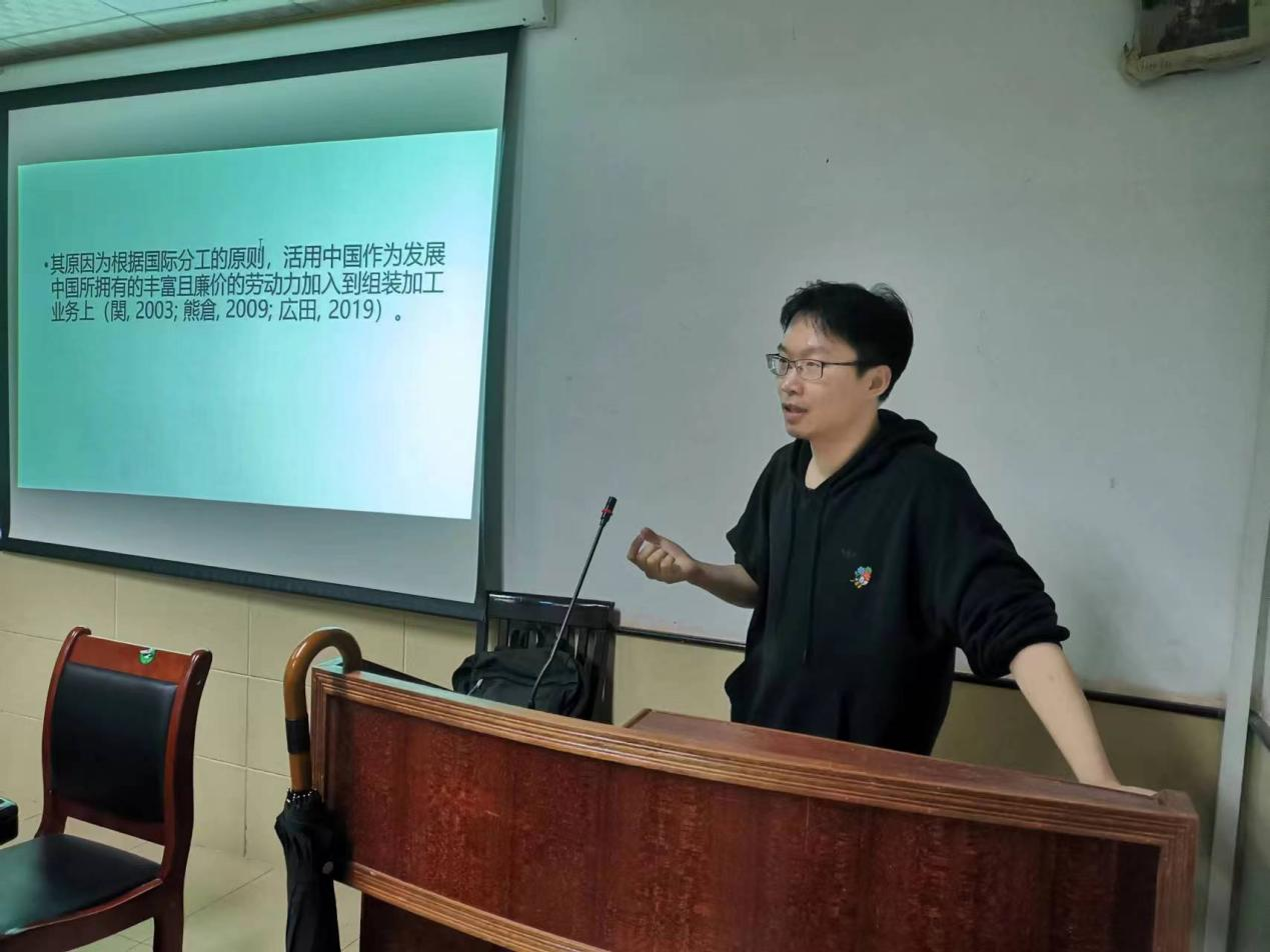孔老师此次汇报的工作论文题目是“中国的组装业务比较优势对出口比较优势的影响分析——以高技术产业为例”。提出的问题是在以劳动密集而发展起来的中国高科技产业,与通过了刘易斯转换点而导致的劳动力不足这两个因素的相互影响下,中国的高科技产业如何能保持优势继续发展。孔老师逻辑清晰,语言深入浅出,让各位老师聆听了一场学术盛宴。
