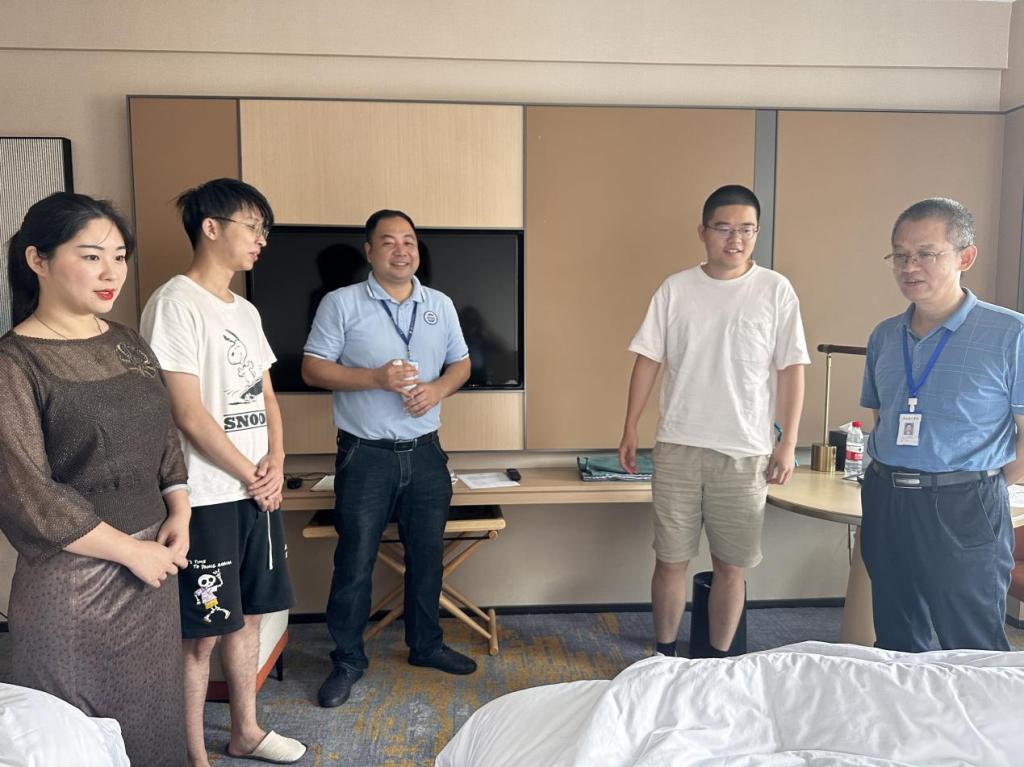 6月30日上午,William威廉官网院长谢林林、党总支书记彭康煜、办公室主任杨晗陪同一起前往广州知识城纳米国际酒店、木文缇酒店看望我院新入职教师,带去学院对新教师的关心和慰问。