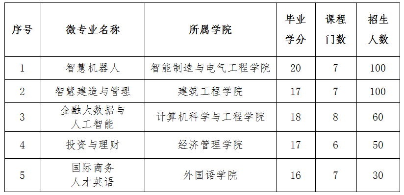 为更好地适应新技术、新产业、新业态、新模式发展需要,推动人才培养模式改革,增强毕业生就业竞争力,满足复合型人才培养以及学生的个性化发展和多样化需求,学校自2022年起启动微专业建设工作。经过一年的筹备,学校拟面向全体在校本科生开设5个微专业,现将招生报名工作的有关事项通知如下: