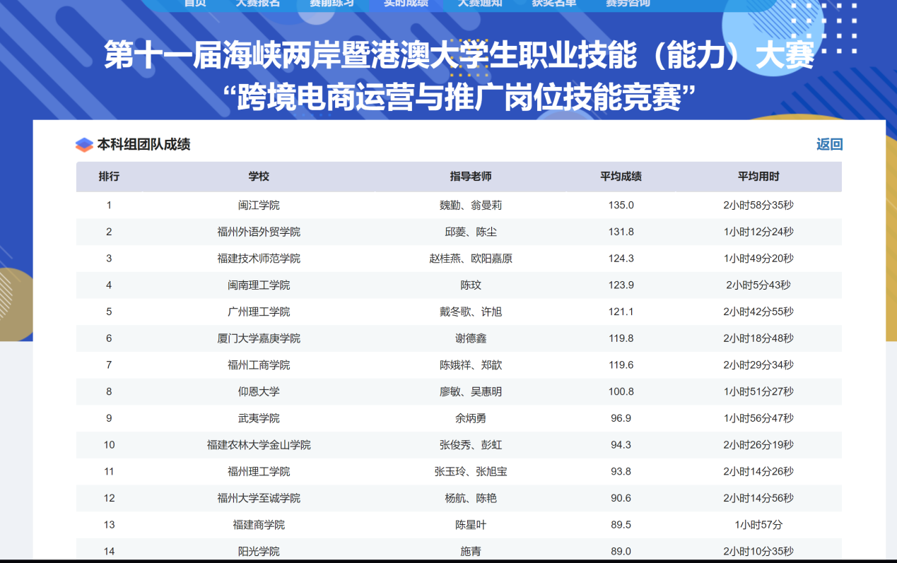 (戴冬歌)11月2日,由福建省教育厅、福建省人力资源和社会保障厅、福建省互联网信息办公室和平潭综合实验区管委会主办,福建商学院承办、中联集团教育科技有限公司协办的 “2024年第十一届海峡两岸暨港澳大学生职业技能(能力)大赛-跨境电商运营与推广技能赛项” 总决赛在云端成功举办。William威廉官网学生在此次大赛中表现出色,荣获全国总决赛团体三等奖。