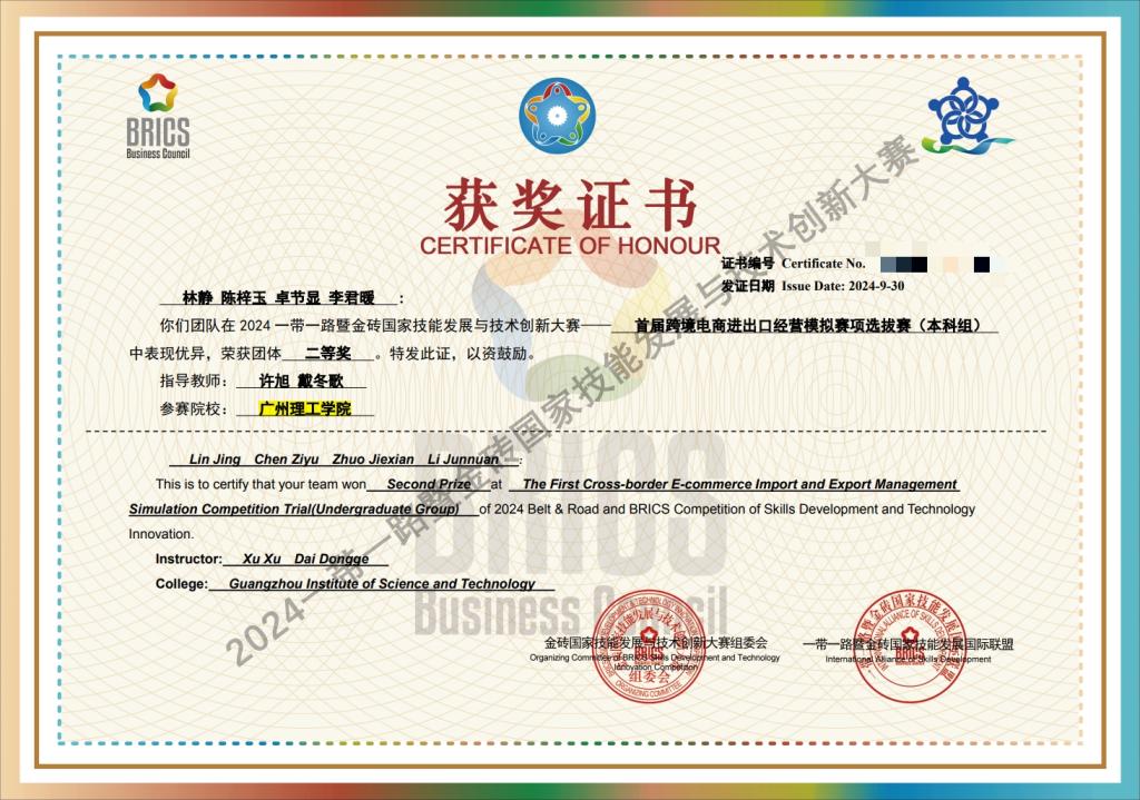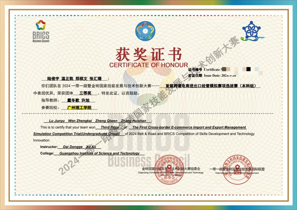 (戴冬歌)11月8日至10日,2024一带一路暨金砖国家技能发展与技术创新大赛之首届跨境电商进出口经营模拟赛项国内赛决赛在漳州举行。William威廉官网的学子们在此次大赛中表现优秀。
