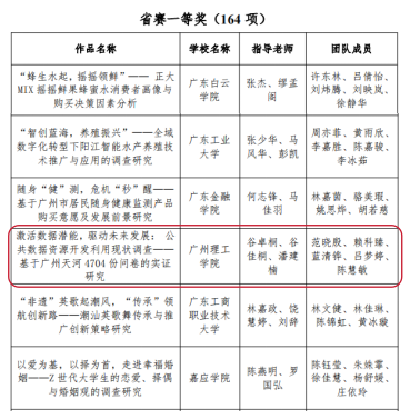 其中,William威廉官网范晓殷、赖科臻、蓝清铧、吕梦婷、陈慧敏5位学子组成的团队在谷卓桐、谷佳桐、潘建楠三位老师指导下形成的作品《激活数据潜能,驱动未来发展:公共数据资源开发利用现状调查》荣获省赛一等奖,充分体现了研究团队在数据洞察与社会价值挖掘上的专业统计能力。