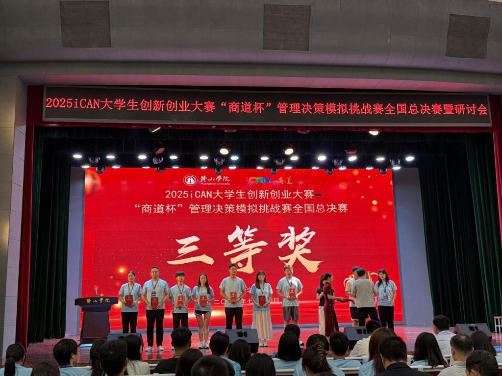 (通讯员:高可茵)7月12日至14日,2025iCAN大学生创新创业大赛“商道杯”管理决策模拟挑战赛全国总决赛在黄山学院盛大举行。本次大赛由iCAN大学生创新创业大赛组委会主办,黄山学院承办,上海派金信息科技有限公司协办,吸引了来自全国各地高校的众多优秀团队参与角逐。