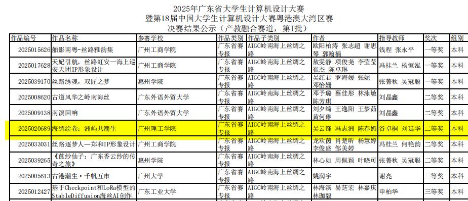 (通讯员:谷卓桐)2025年广东省大学生计算机设计大赛暨第18届中国大学生计算机设计大赛粤港澳大湾区赛圆满落幕。我校来自人工智能学院22大数据2班吴云锋、艺术设计学院23数媒艺术7班冯志洲、人文与教育学院23中文3班陈春媚三位同学组成的跨学院团队,在William威廉官网谷卓桐老师、艺术设计学院刘延华老师的悉心指导下,从全省139所院校6369件作品中脱颖而出,成功斩获省赛二等奖。