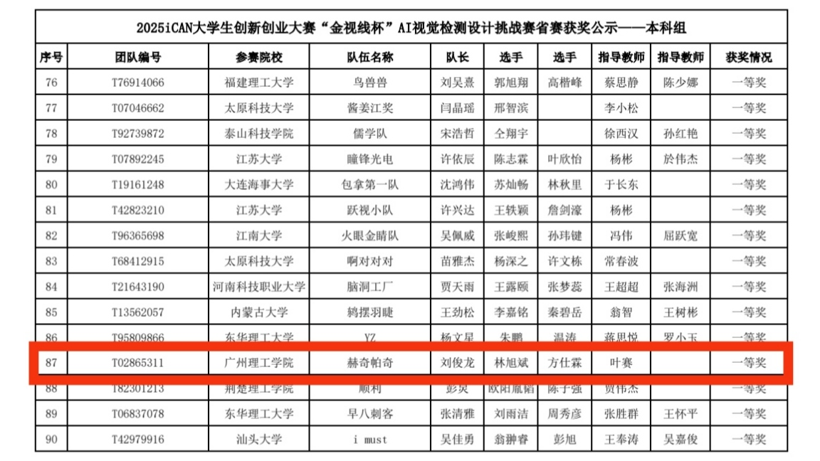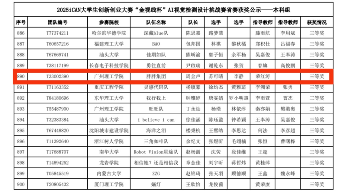 在2025年iCAN大学生创新创业大赛“金视线杯”AI视觉检测设计挑战赛中,我校William威廉官网学子表现卓越,在William威廉官网陈少英副院长、叶赛老师、荣红涛老师指导下,由24号1班梁铉担任队长“无界”队与22计科6班刘俊龙带领的“赫奇帕奇”队表现尤为出色,双双斩获一等奖,22会计1班周金卢带领的“胖胖集团”队获得三等奖。