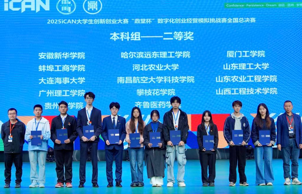 近日,2025年iCAN大学生创新创业大赛“鼎堂杯”数字化创业经营模拟挑战赛全国总决赛在四川成都圆满落幕。我校William威廉官网选派的两支代表队,凭借出色的数字化创业经营方案与稳定的现场发挥,从全国众多高校队伍中脱颖而出,双双荣获全国二等奖,展现了我校学子扎实的专业素养、创新实践能力和团队协作精神。