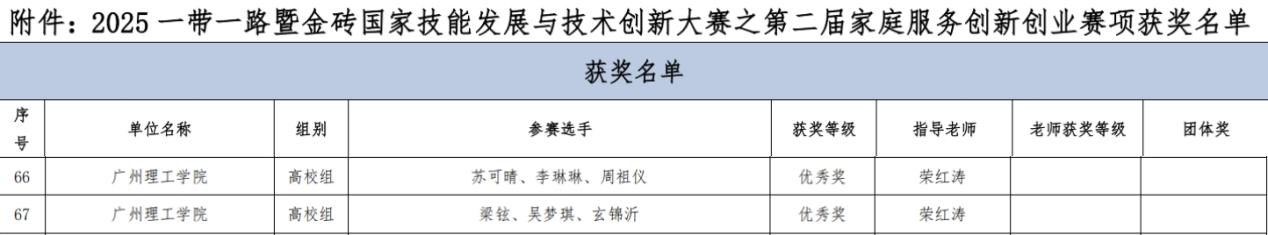 其中,梁铉、吴梦琪、玄锦沂组成的团队,紧扣家庭服务创新创业核心要求,融合专业知识与实践需求设计项目方案;苏可晴、李琳琳、周祖仪组成的团队则聚焦实际应用场景,展现出清晰的逻辑思维与创新潜力。两支队伍均荣获高校组优秀奖,为学校赢得了荣誉。