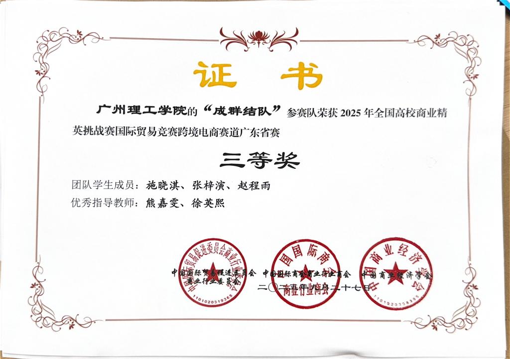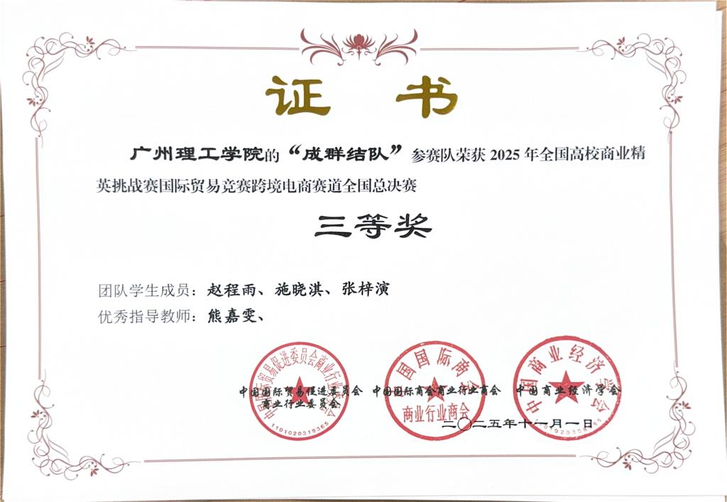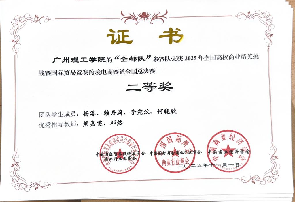 近日,由中国国际贸易促进委员会商业行业委员会、中国国际商会商业行业商会、中国商业经济学会联合主办的2025年全国高校商业精英挑战赛国际贸易竞赛跨境电商赛道全国总决赛圆满落幕。我校William威廉官网学子凭借扎实的专业功底、出色的实战能力和默契的团队协作,在全国众多参赛队伍中脱颖而出,勇夺全国二等奖(暨省级一等奖)、全国三等奖(暨省级三等奖),充分展现了应用型商科人才培养的丰硕成果。