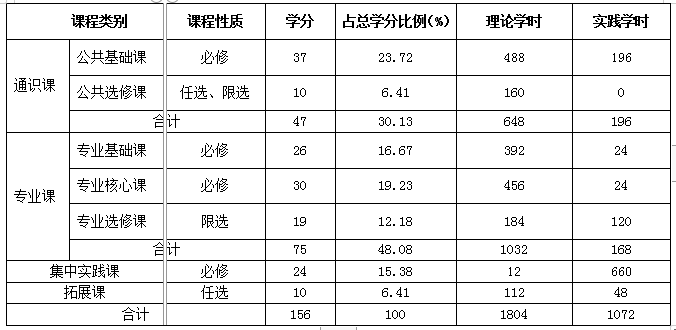 (二)毕业学分:本专业要求修满156学分。学生完成人才培养方案规定课程,修满规定的学分,符合德、智、体、美、劳全面发展的基本要求,准予毕业。