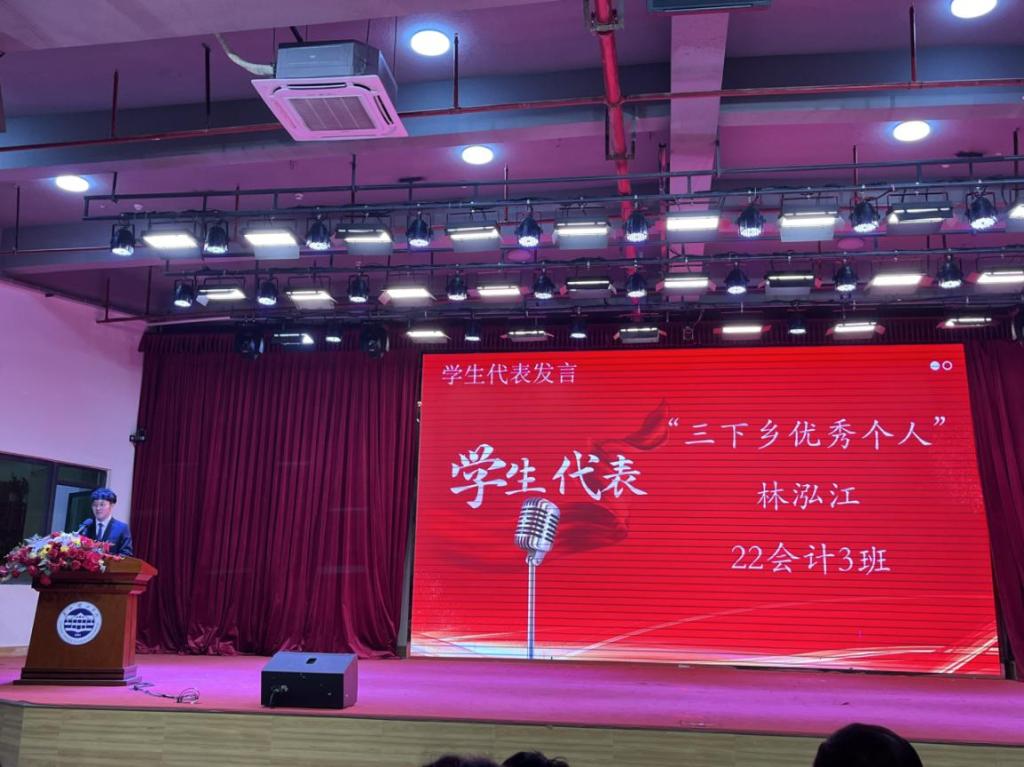 学生代表林泓江表示,在此次三下乡活动中带领队伍深入龙川当地,收集数据、访问乡村状况和获取资料,将国家的资助政策传递到每一个需要的角落,再次感谢学校及学院搭建的社会实践平台,也感谢老师们和同学们的大力支持和帮助。
