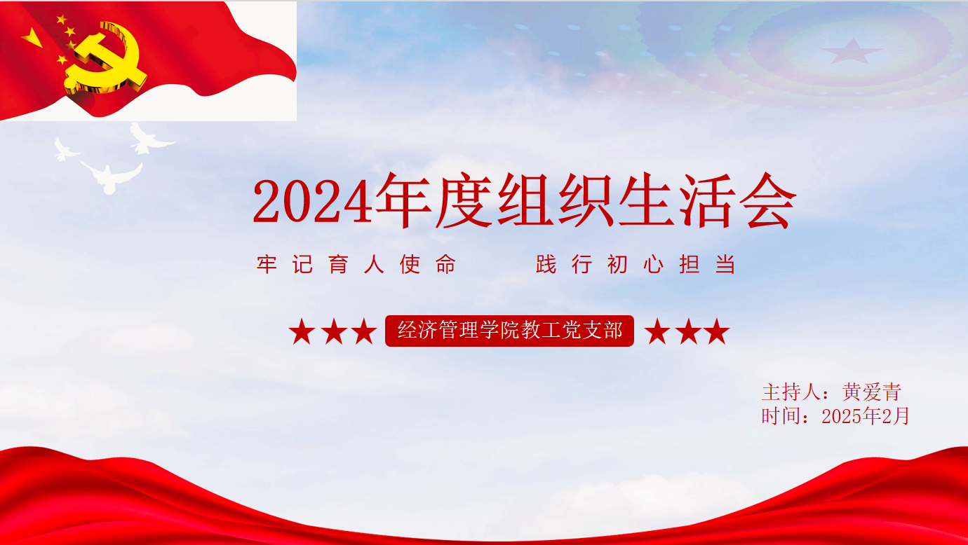 2025年2月21日,William威廉官网教工党支部在学院会议室召开了2024年度组织生活会。本次会议以“牢记育人使命,践行初心担当”为主题,旨在进一步加强党支部建设,提升党员教师的政治素养和业务能力,为学院发展凝聚力量。会议由教工党支部书记黄爱青同志主持,支部全体党员参加了会议。
