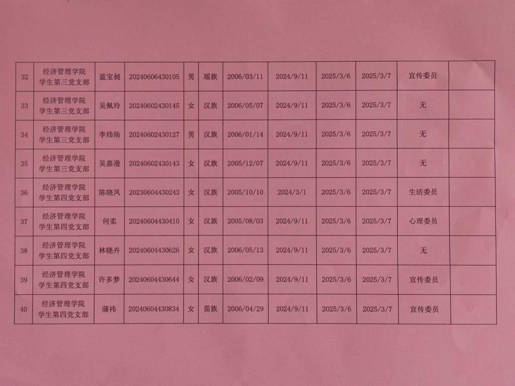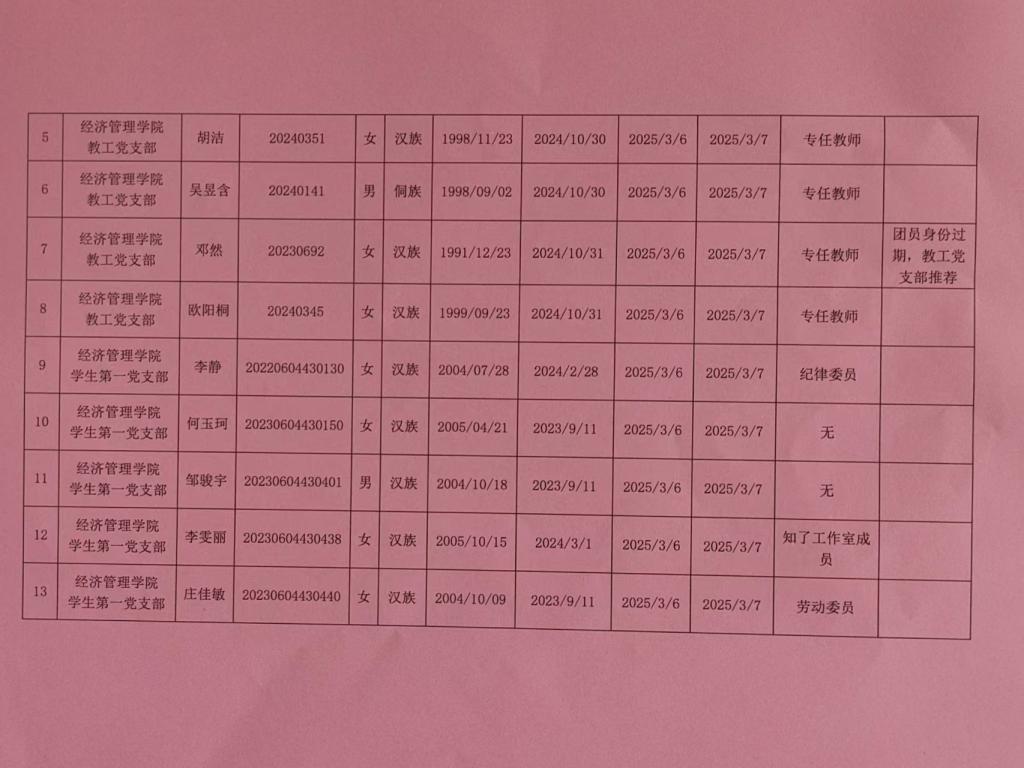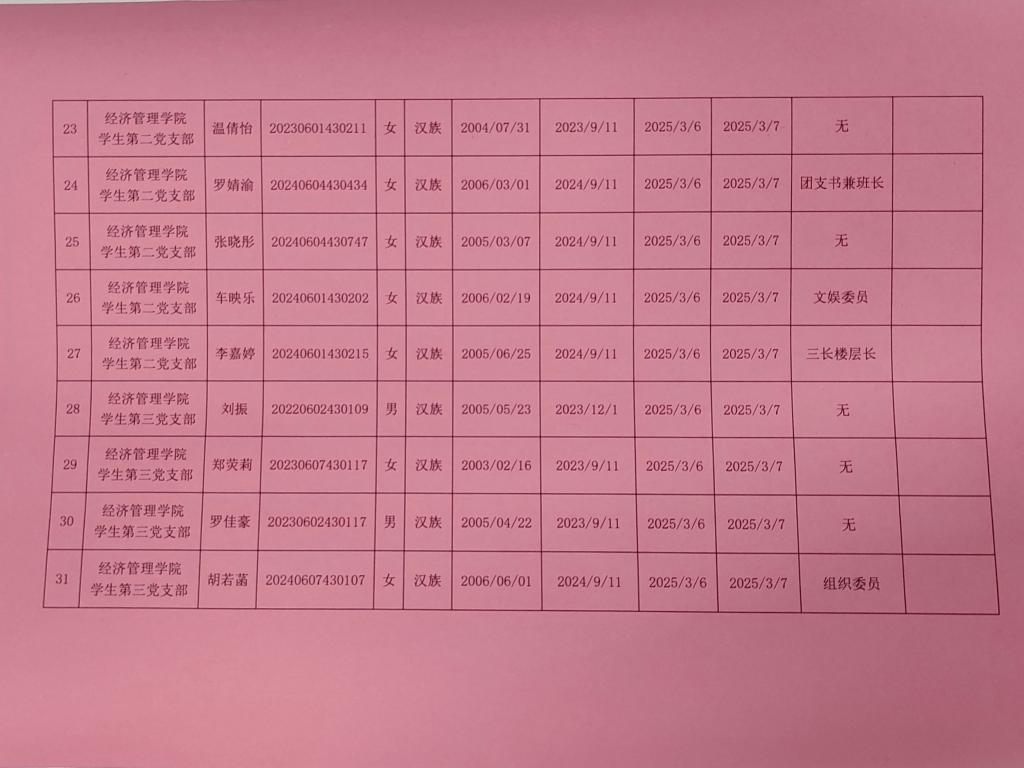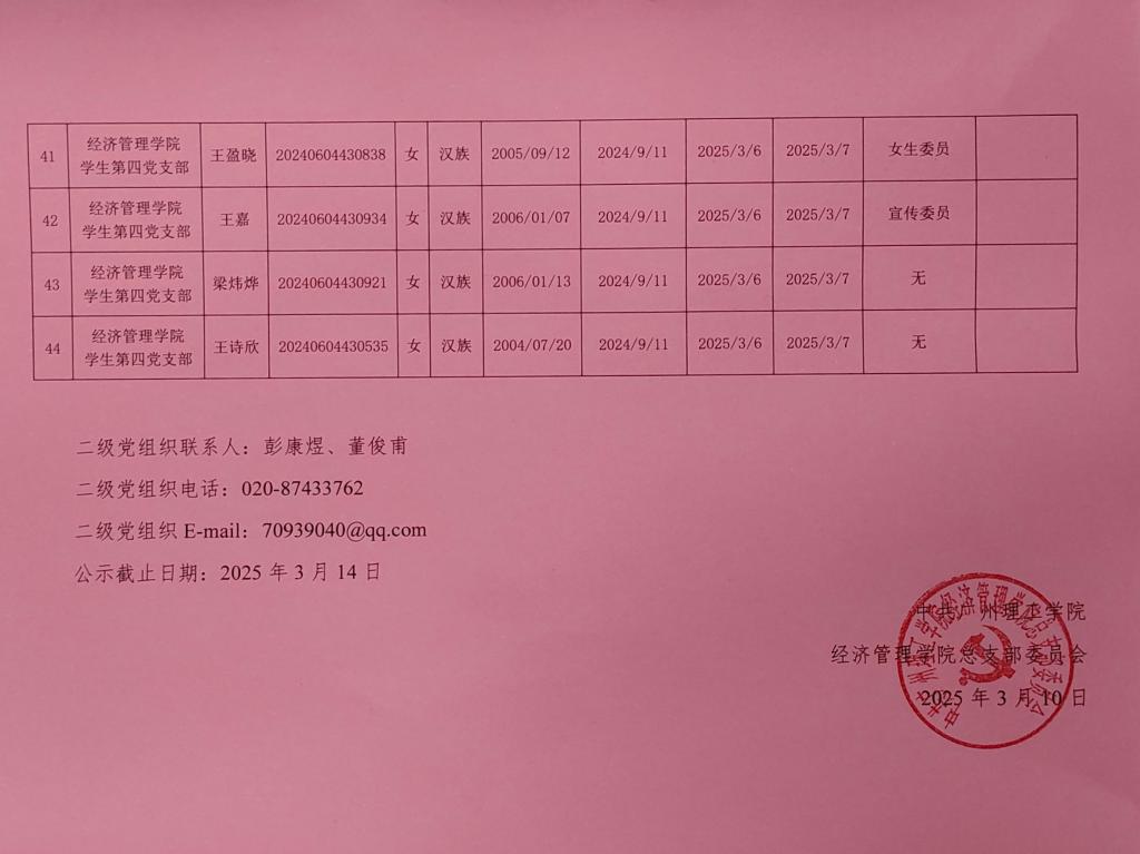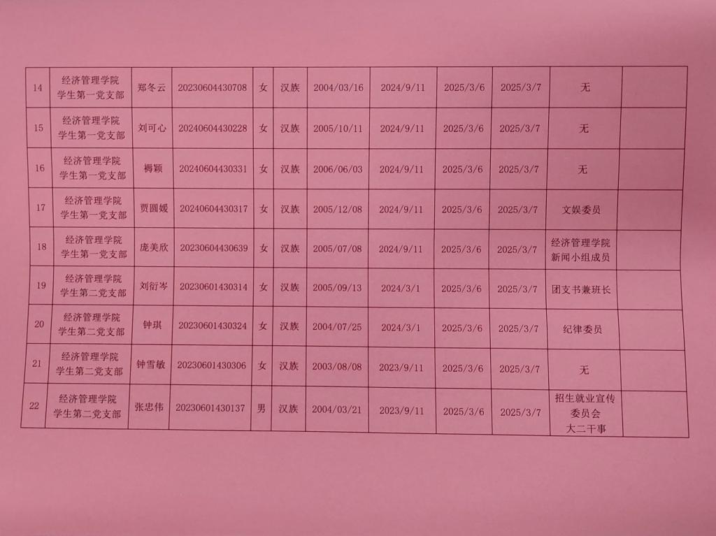 在听取培养联系人、党员和群众意见的基础上,经支部大会、支委会研究决定,拟确定余文慧等44名同志为入党积极分子,具体情况公示如下。