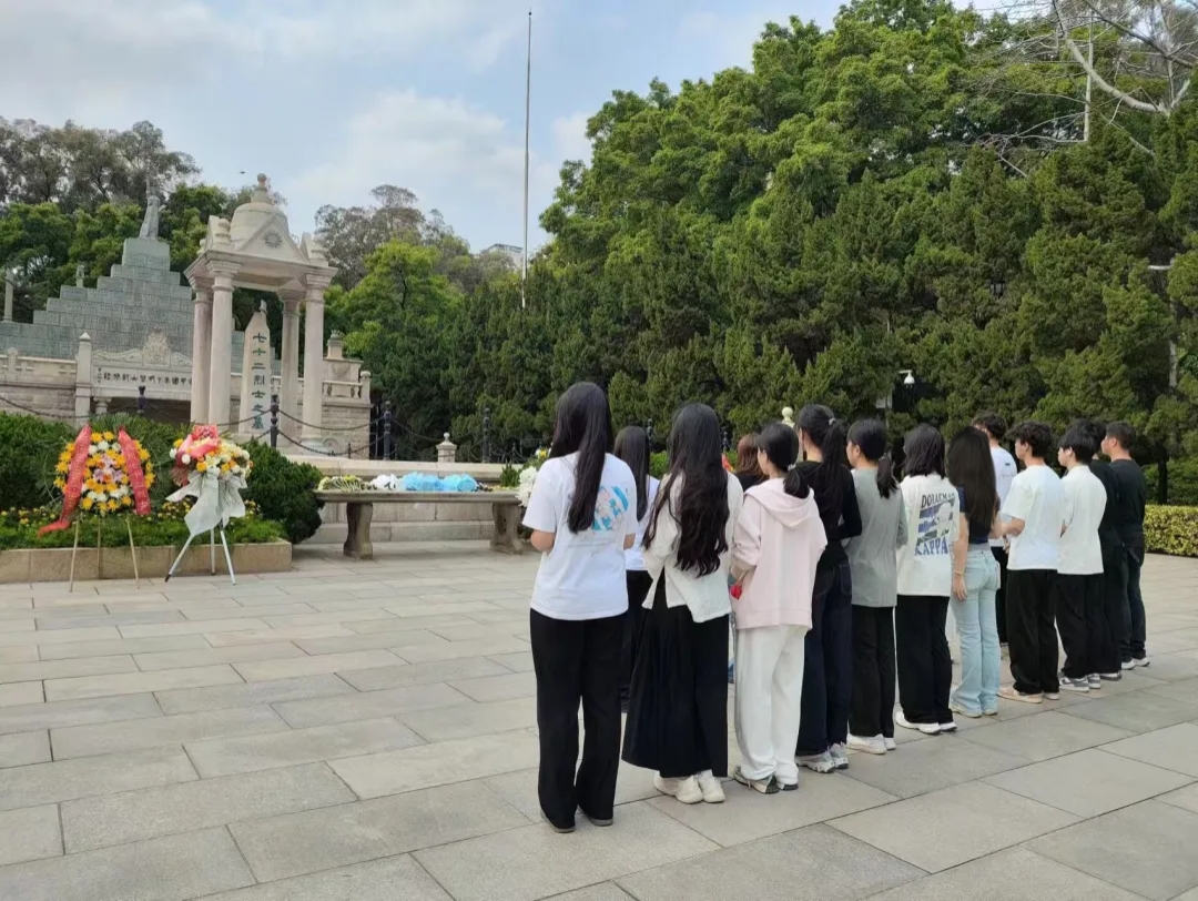 当日下午,大家怀着崇敬的心情抵达黄花岗七十二烈士墓园。在烈士墓前,全体学生整齐列队,神情庄重,表达了对先烈们的深切缅怀和崇高敬意。