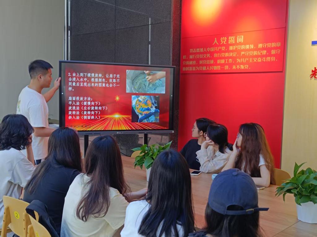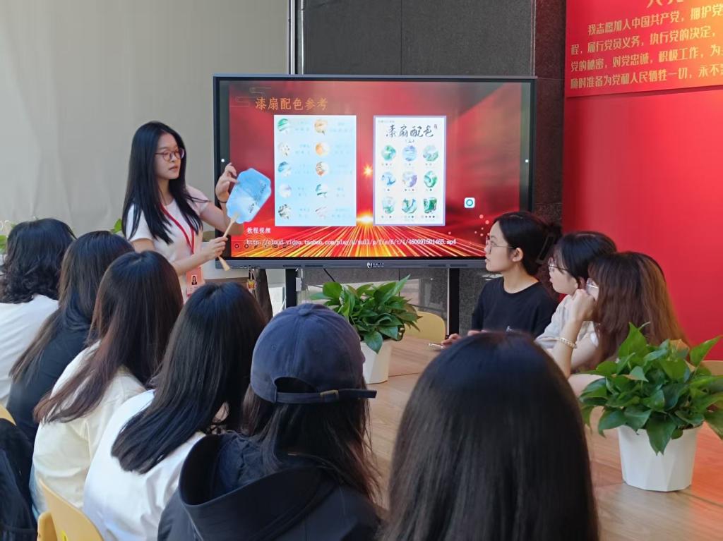 在制作过程中,党员们充分发挥创意,将红色元素巧妙地融入漆扇的设计之中。有的党员绘制了鲜红的党旗、璀璨的五角星等经典红色符号,表达着对党的无限忠诚与热爱;有的则以革命先烈的英勇事迹为创作灵感,用画笔讲述着一段段感人至深的故事,传递着对先辈的深切敬仰与缅怀。在“一站式”学生第九社区这个充满活力的平台上,党员们不仅亲身体验到了传统手工艺的独特魅力,更深刻领悟到了匠心精神所蕴含的深厚内涵。每一把精心制作的漆扇,都凝聚着大家的心血与汗水,承载着对红色文化的崇高敬仰和坚定传承。