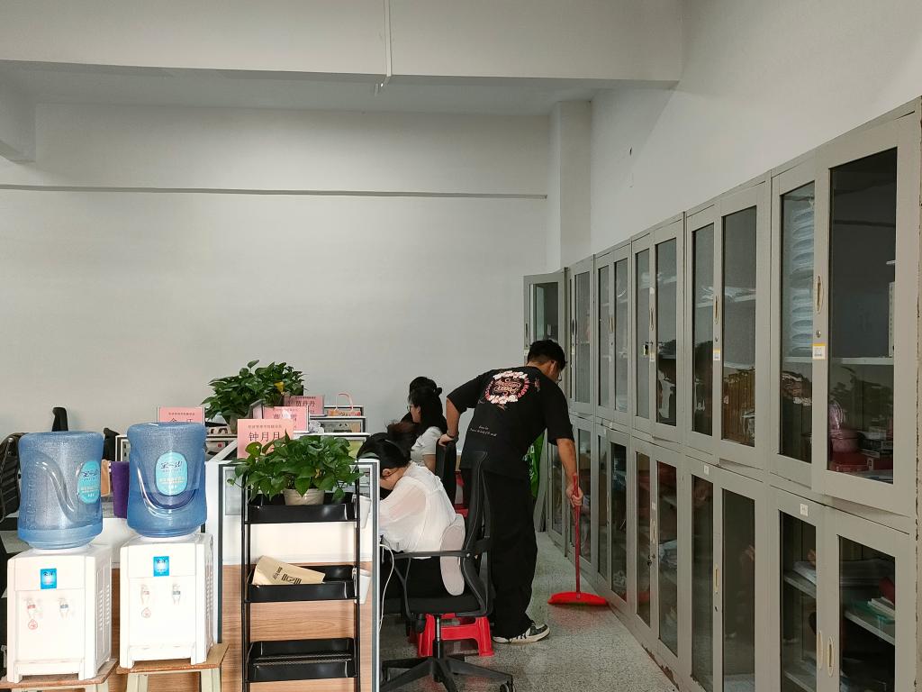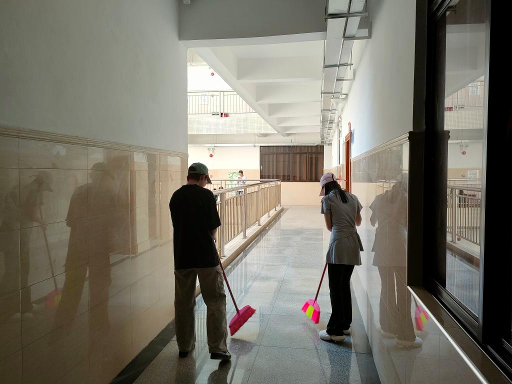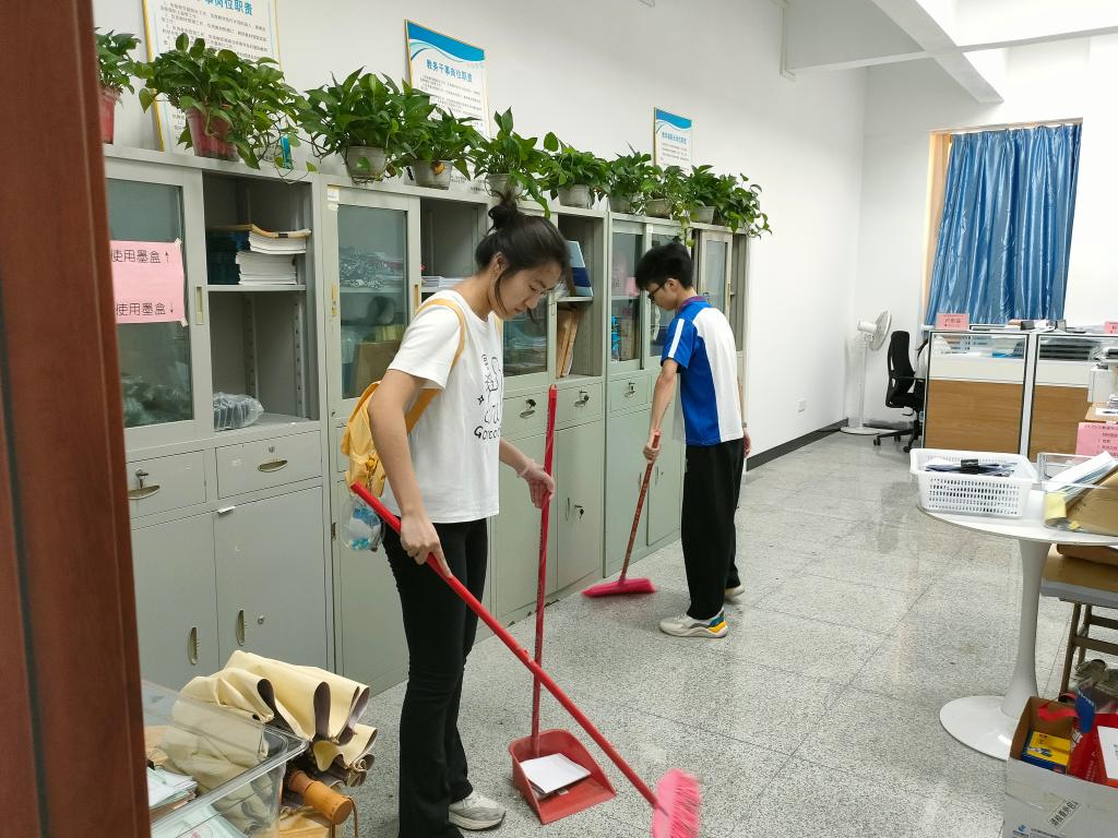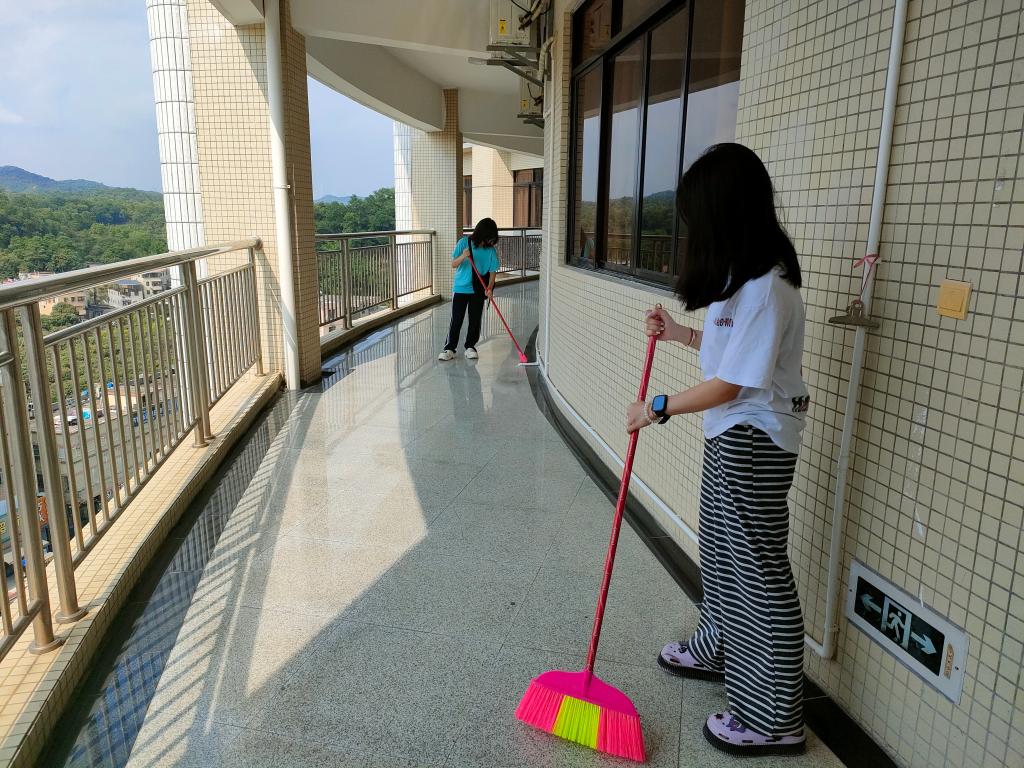 随后,数名学生志愿者分组投入爱国卫生实践。在教师带领下,学生分工协作,对教学楼走廊、实验室、教室及周边绿化带展开全面清扫。重点清理积存垃圾、规范分类设施、擦拭公共设施,并制作文明标语张贴于卫生死角。劳动过程中,同学们分工明确、协作高效,顺利完成环境美化任务,校园面貌焕然一新。