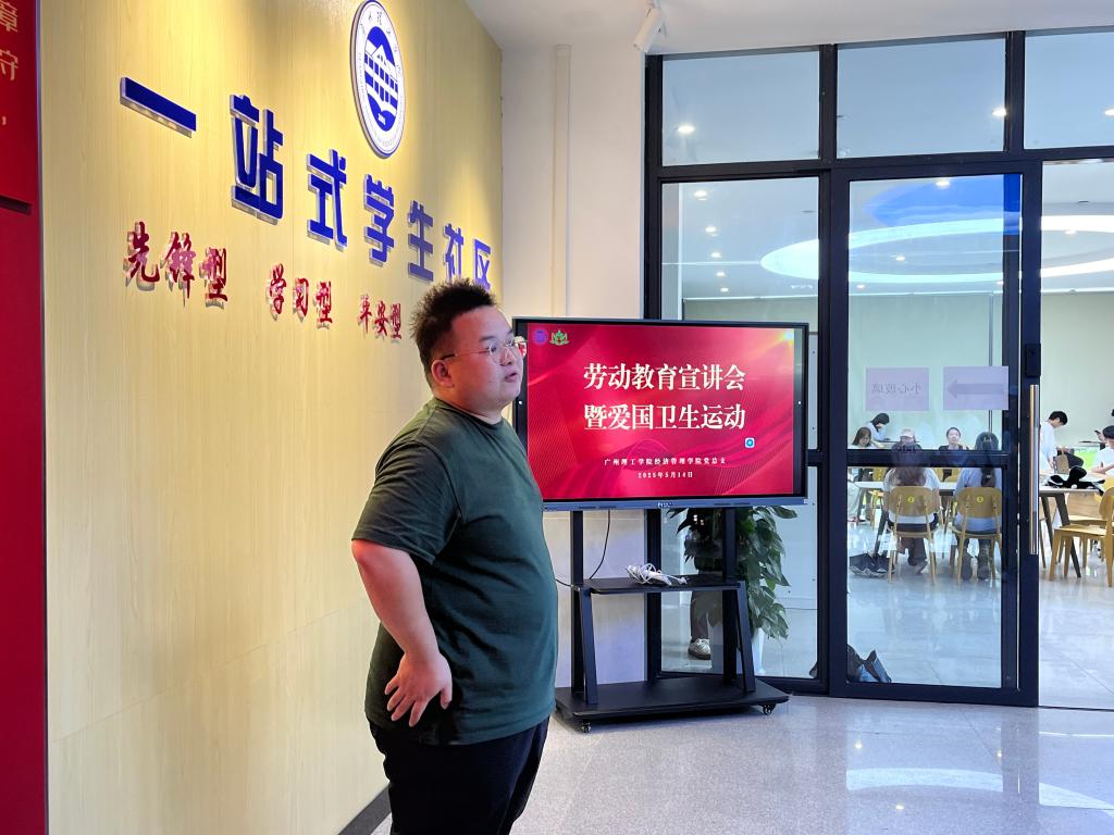 活动伊始,学生第四党支部书记余江老师结合校园生活实例,阐释劳动对品格塑造与能力提升的重要意义,并指导学生如何将劳动融入日常学习与生活。宣讲内容简洁务实,现场学生专注聆听。