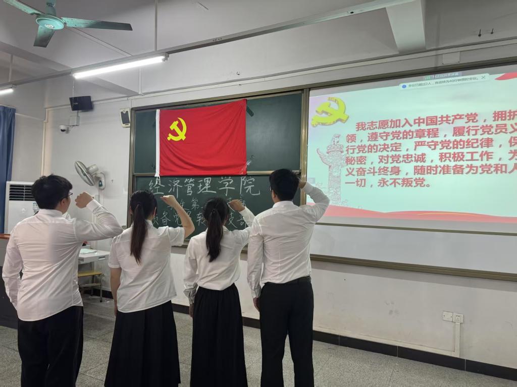 宣誓环节,全体党员在领誓人的带领下宣读入党誓词。他们高举右手,目光坚定,誓言掷地有声,表达了对党的无限忠诚和为共产主义事业奋斗终身的坚定决心。