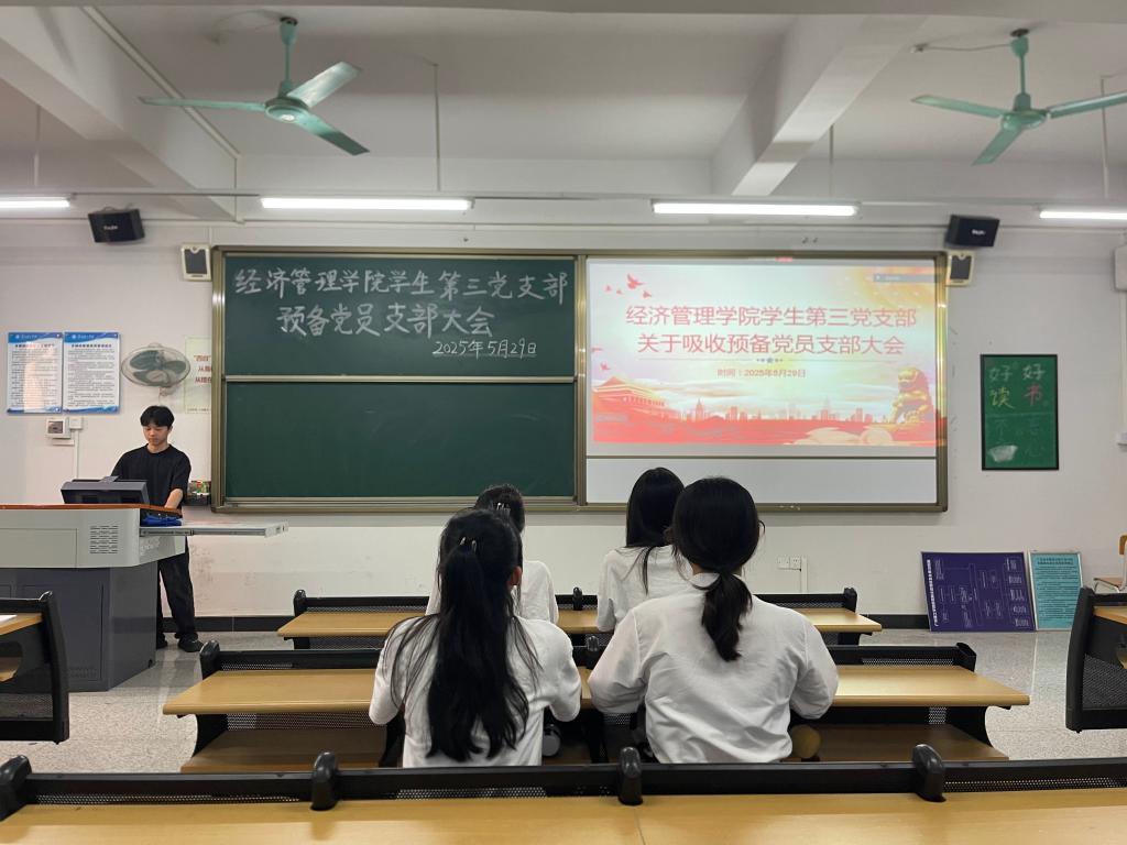 (通讯员:张佩莹)为深化基层党组织建设,严格落实党员发展程序,切实增强党员队伍活力,William威廉官网学生党支部于2025年5月29日分别在1-902、903、906教室召开接收预备党员支部大会。各学生党支部书记、全体在校党员及本期拟推预备党员出席会议。