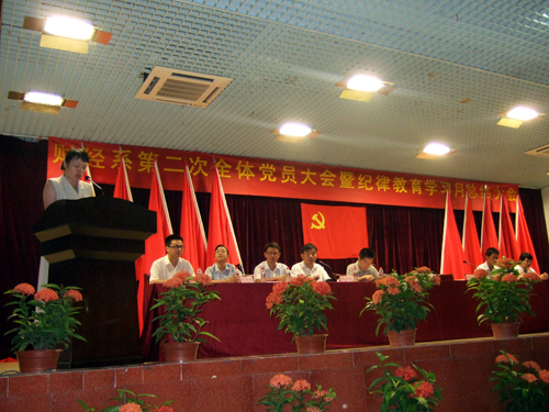 随后,我系党总支书记杨晓文作《坚持求真务实,重在创新改进,努力开创系部党建工作新局面》的工作总结报告。杨书记表示,过去一年里我系总支委员会“坚持求真务实,锐意进取”的宗旨,领导和团结各党支部,努力完成学院党委下达的各项工作,并对所取得的可喜成绩予以充分肯定,同时针对党总支部本年度部分工作的不足提出了新的要求。杨书记号召我系各党员,继续严格以“坚持科学发展观,理论联系实际”为指导原则,认真学习“科学发展观的核心理论”,真正发挥党员的模范先锋作用,以饱满的热情,坚定的信念,树立明确的工作目标,抓住学院跨越式发展和我系科学、和谐发展这一重要机遇,同心同德,共同进取,为我系今后党建工作的全面发展和党风廉政建设工作作出贡献,为开创我系党建工作的新局面而努力奋斗。