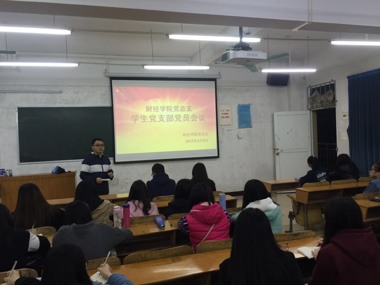 3月8日,我院学生党支部在6栋314教室召开了学生党支部党员会议,参加本次会议的有财经学院学生第二党支部书记寇进,以及在校26名学生党员和预备党员。