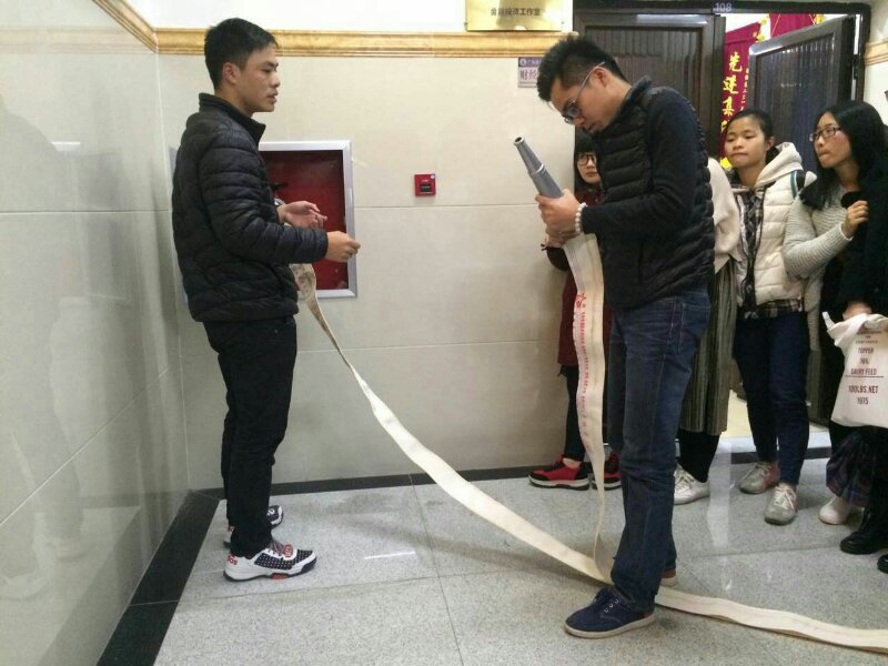 在讲座过程中,戴胜辉老师给我们讲解了火灾的定义及特点,分析了火灾现场的相关常识,比如,火灾现场对人体危害最大的是浓烟,如何利用棉布吸水降温和躲避浓烟,火灾现场逃生的常识要领,遭遇火灾时如何拨打119,如何检查干粉灭火器是否合格以及如何使用干粉灭火器的问题。讲座结束前,戴老师还现场演示了如何在紧急情况下正确使用教学楼内的消防栓。最后,颜冬果老师做讲座总结,并对接下来的雷锋月“净化校园”的主题党日活动做相关部署。