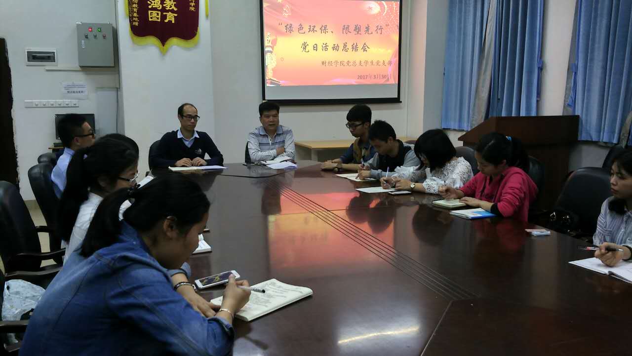 3月18日-30日,在党总支书记谭飞的部署下,财经学院院党总支学生党支部通过开展“绿色环保,限塑先行”为主题的党日活动,推进“两学一做”学习教育常态化,不仅增强了党组织的向心力,还充分调动和发挥了学生党员的积极性和创造性,还将主题党日活动与专业知识学习紧密结合起来,为建设绿色校园、环保校园及和谐校园服务,推进我校“双转”工作稳步前行。
