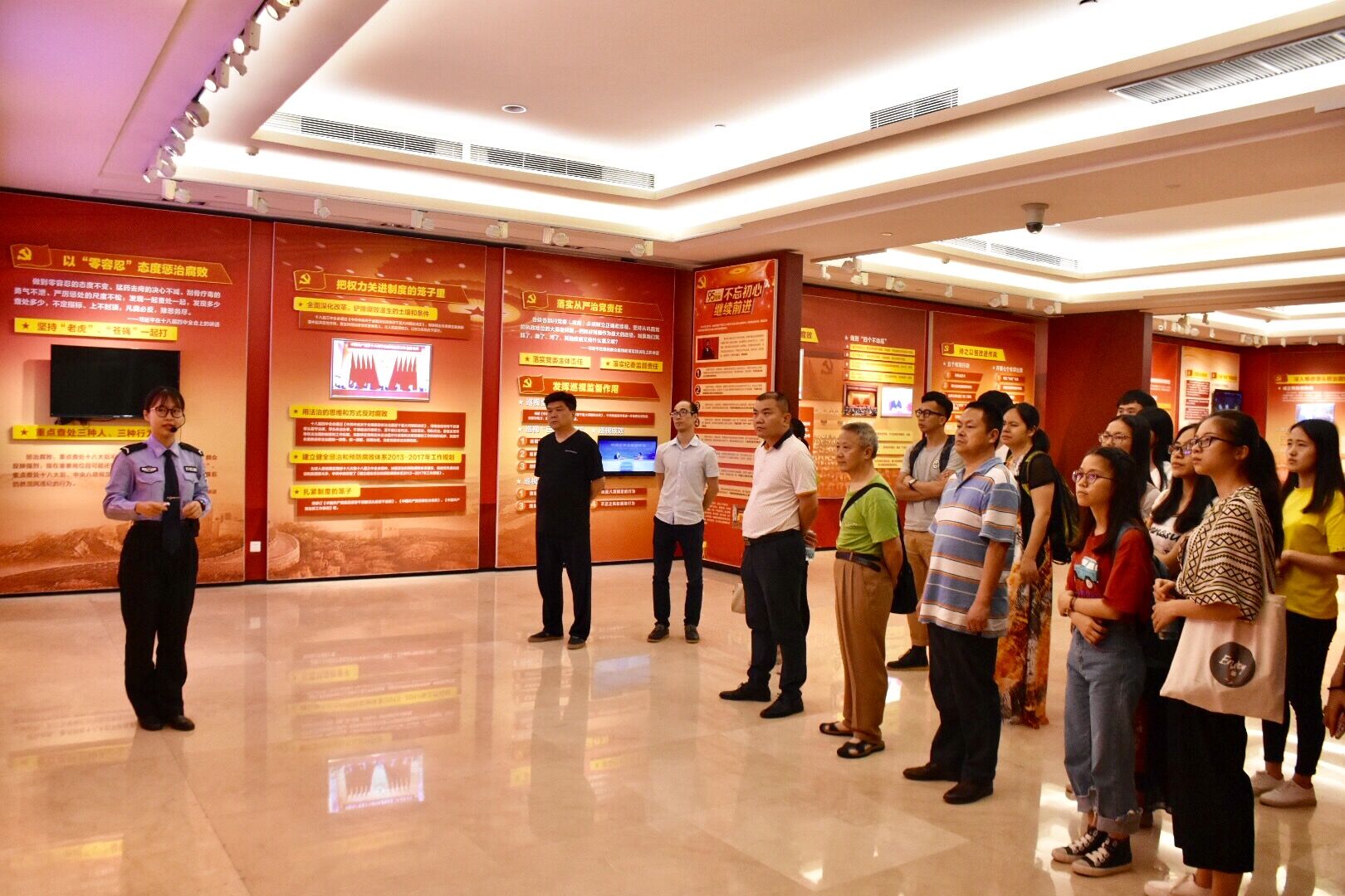 基地展览以“反腐倡廉、警钟长鸣”为主题,分为“风正帆扬、从严治党、贪腐鉴录、拒腐防变、风清气正”五个部分,各展厅以丰富的史料和典型的案例为基础,配合现代化多媒体手段,全面展现了广东反腐败斗争波澜壮阔的伟大历程。党员同志们置身展览现场,通过一个个鲜活的案例、一幅幅真实的画面、一件件实物和一段段视频生动展示了高官沦为阶下囚的过程,警示每位参观者在任何情况下都要稳住心神、管住手脚、挡住诱惑、经住考验。参观过程中,党员同志深受感染和触动,心灵产生强烈的震撼。