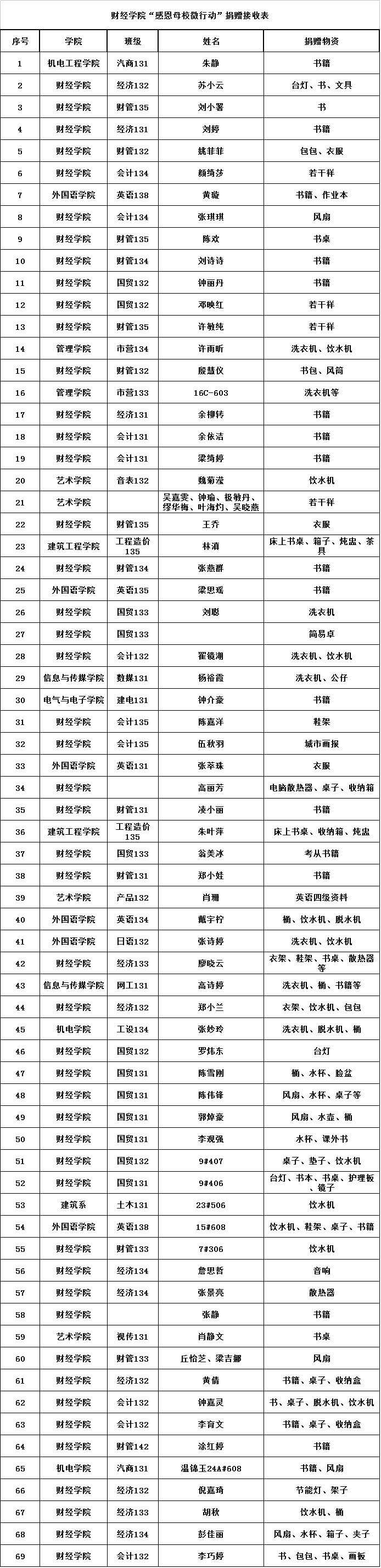 (通讯员 寇进)24日、25日,受学校党委委托,财经学院党总支党员爱心同行工作站开展了“感恩母校微行动”。为了配合毕业生安全、文明、有序离校,党员爱心同行服务站在校园主干道上开展了为期两天的服务活动。学校党委领导多次现场指导,全校毕业生踊跃支持,共获得捐赠品千余件。