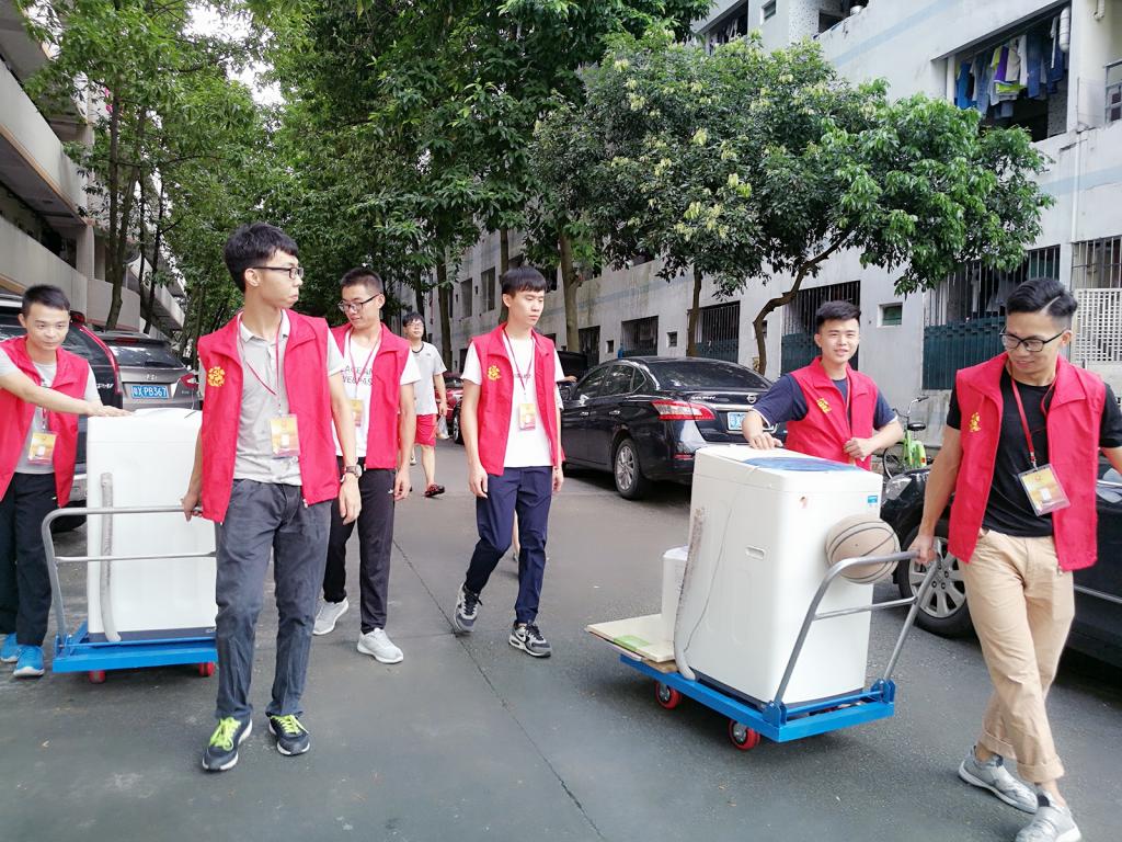 此次感恩微行动中,校党委提出了“留下一份爱心,留下一份清洁,留下一份文明,带上一份责任”的倡议,提倡毕业生党员及毕业生将闲置的书籍、洗衣机、风扇等物品留给寒门学弟学妹。为落实校党委的倡议,给寒门学子送上一份温暖,在谭飞书记和寇进老师的安排下,服务站的党员同志们一共分为签收组、搬运组、后勤组,分别负责毕业生现场捐赠的物资签收,将物资搬运到服务站,后勤保障等工作。从早上9点设摊、接受捐赠,直至下午6点,二天的活动结束后,党员同志们还对每一件物件进行清点和清洗。他们放弃周末的休闲和室内的凉爽,顶着烈日,搬着物资来回穿梭在校园中,没有人消极怠工,没有人埋怨牢骚。炎热的天气、沉重的物资阻挡不了他们忙碌的身影,汗湿的衣衫、凌乱的发型遮掩不了他们热心的笑容。