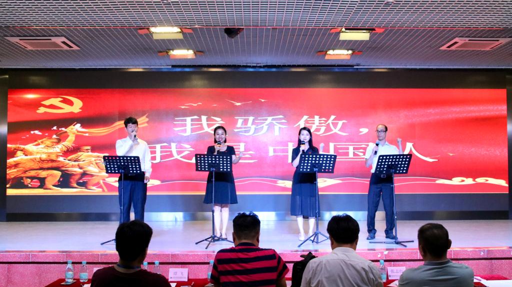 朗诵比赛在《歌唱祖国》的大合唱中正式拉开帷幕。比赛环节设置为个人赛和团体赛两个环节。第一环节为个人赛,共八人。选手们在赛场上拼搏奋战,精彩不断,难分高低。第一环节结束后由周蝶、蔡洁慧带来中场表演双人舞《我的祖国》。第二环节为团体赛,共六组。每组成员团结协作,配合默契,将红色气息感染了现场的观众。整场比赛内容丰富、形式多样、精彩纷呈。在所有比赛环节结束后,段妍君、颜冬果、黄洁雅、杨楚钰四名老师表演朗诵《我骄傲,我是中国人》,精彩表演带动了全场气氛。