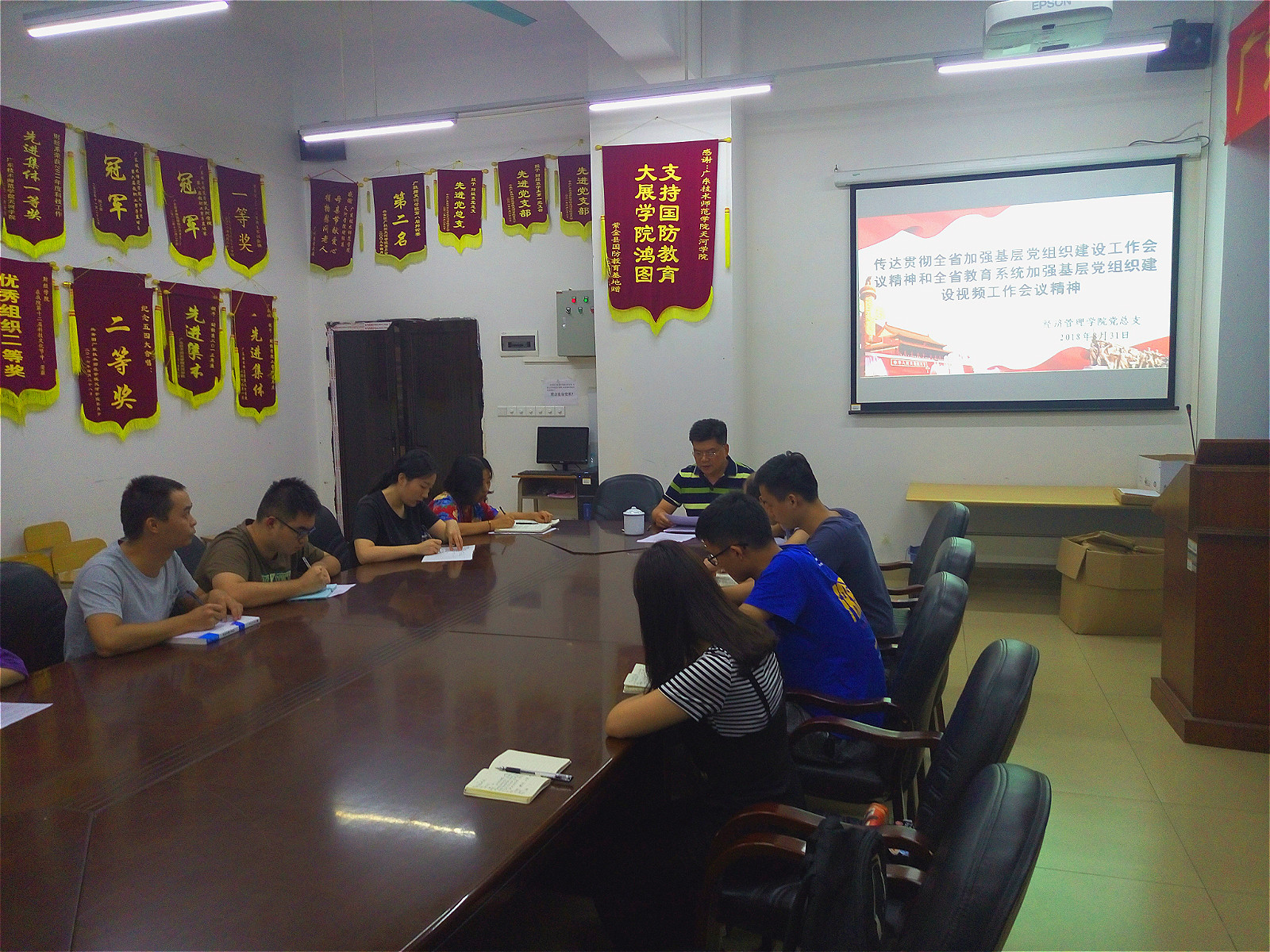 为加强我校基层党组织建设,推动我院基层党组织建设全面进步、全面过硬,我院认真落实“两会”会议精神,认真传达,分析问题,部署任务。党支部书记谭飞在会上传达了省委书记李希同志的讲话精神和《广东省加强党的基层组织建设三年行动计划(2018-2020年)》主要内容,从“突出政治引领、认真贯彻落实各项决策部署、强化责任担当、抓住重点难点”等几方面做出要求和希冀,强调要深刻清醒认识我院党组织建设中的突出问题,并提出了下一步的工作方向,为把我院党组织锻造得更加坚强有力,更为写好教育“奋进之笔”提供坚强思想保证和组织保证。
