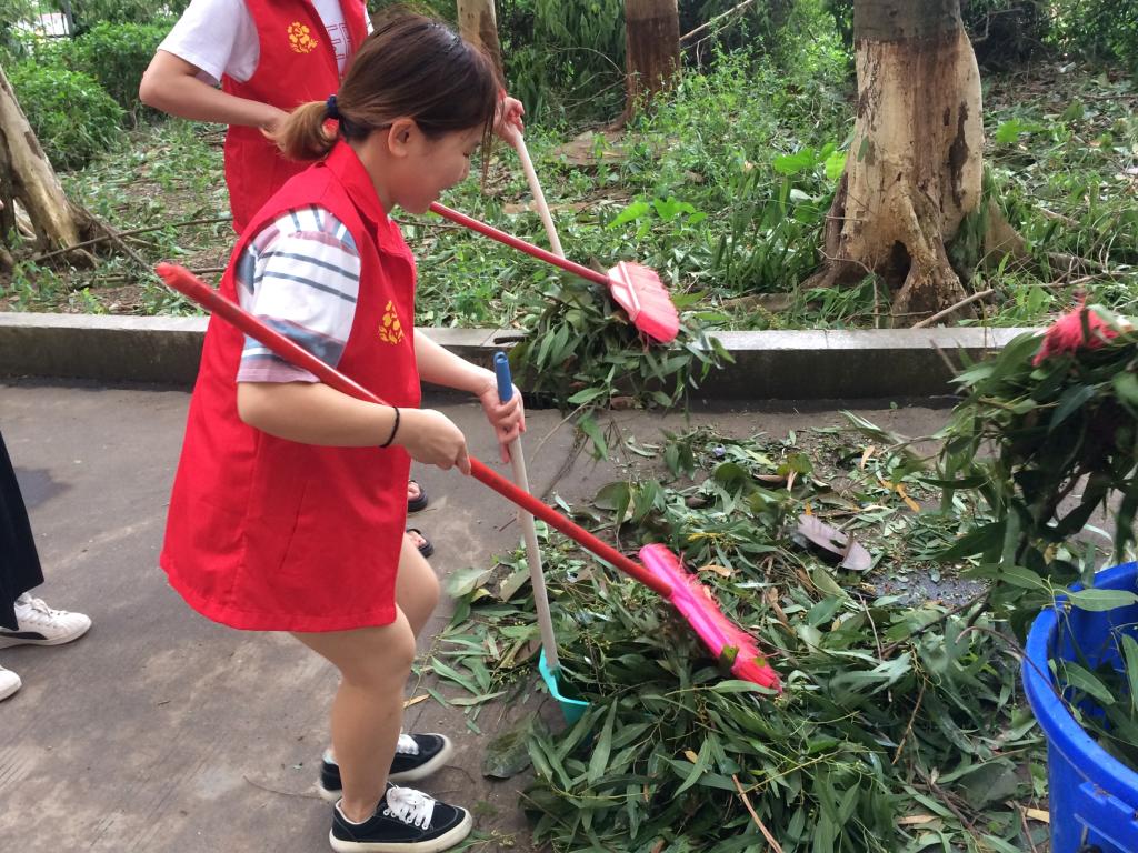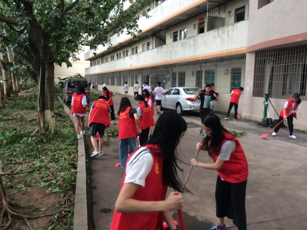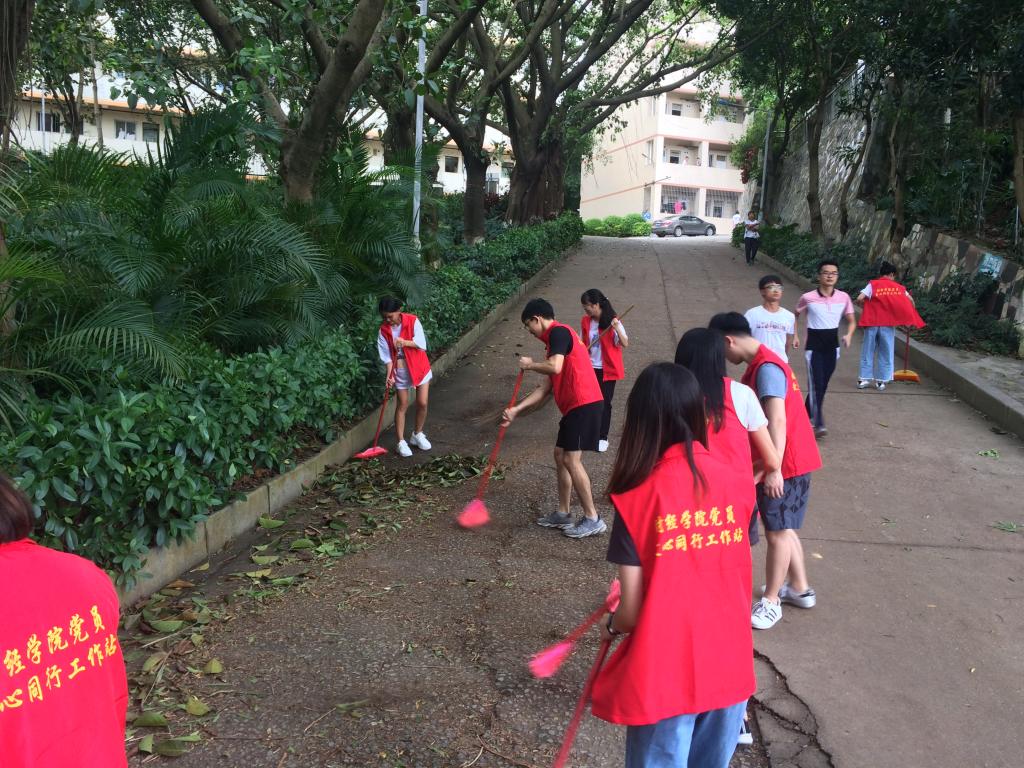 (通讯员 林淑贞、徐兴敏)9月17日,刚刚经受强台风“山竹”暴风骤雨考验的南粤大地终于迎来久违的阳光。“山竹”过后,我省遭受台风灾害,部分市县损失较大,我们美丽的校园也变得一片狼藉。天灾无情,但我们无畏天灾,“家”由我们来守护!为尽快恢复校园整洁的容貌,17日下午,在校党委组织部的部署下,我院党总支组织党员学生开展灾后环境清洁行动。