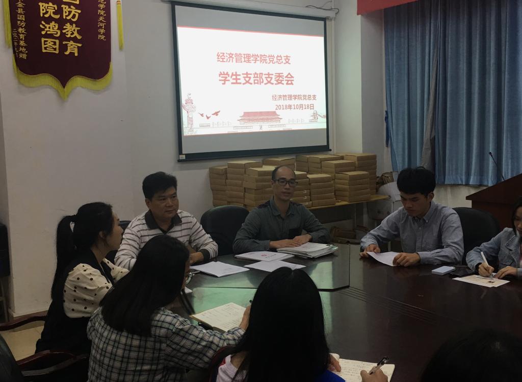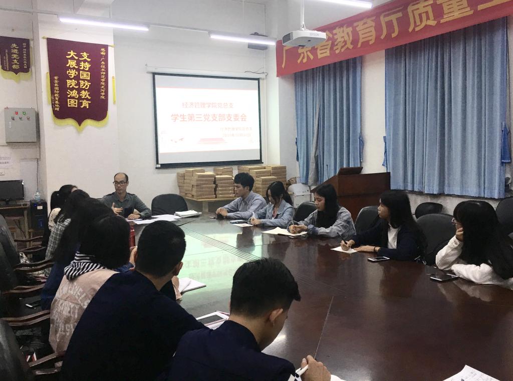 (通讯员林淑贞、徐兴敏)10月18日下午,为进一步夯实我院基层党组织建设,规范学生党员日常行为,充分发挥党支部支部委员的先锋模范作用,我院三个学生党支部委员在11栋108会议室召开了支部委员会。会议由党总支组织委员、学生第三党支部书记颜冬果主持,党总支书记谭飞、学生第二党支部书记张宁参加会议。本次会议内容主要围绕学生党支部建设、督促和部署支部党建工作展开讨论。